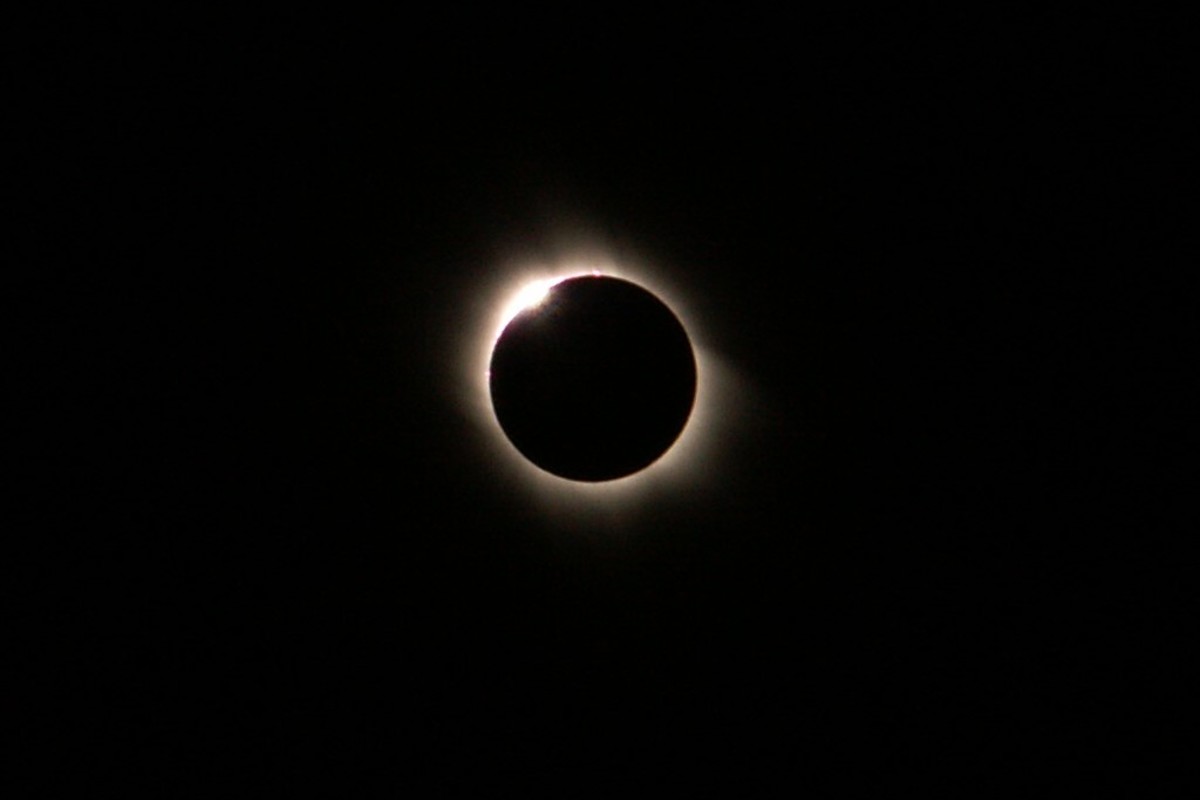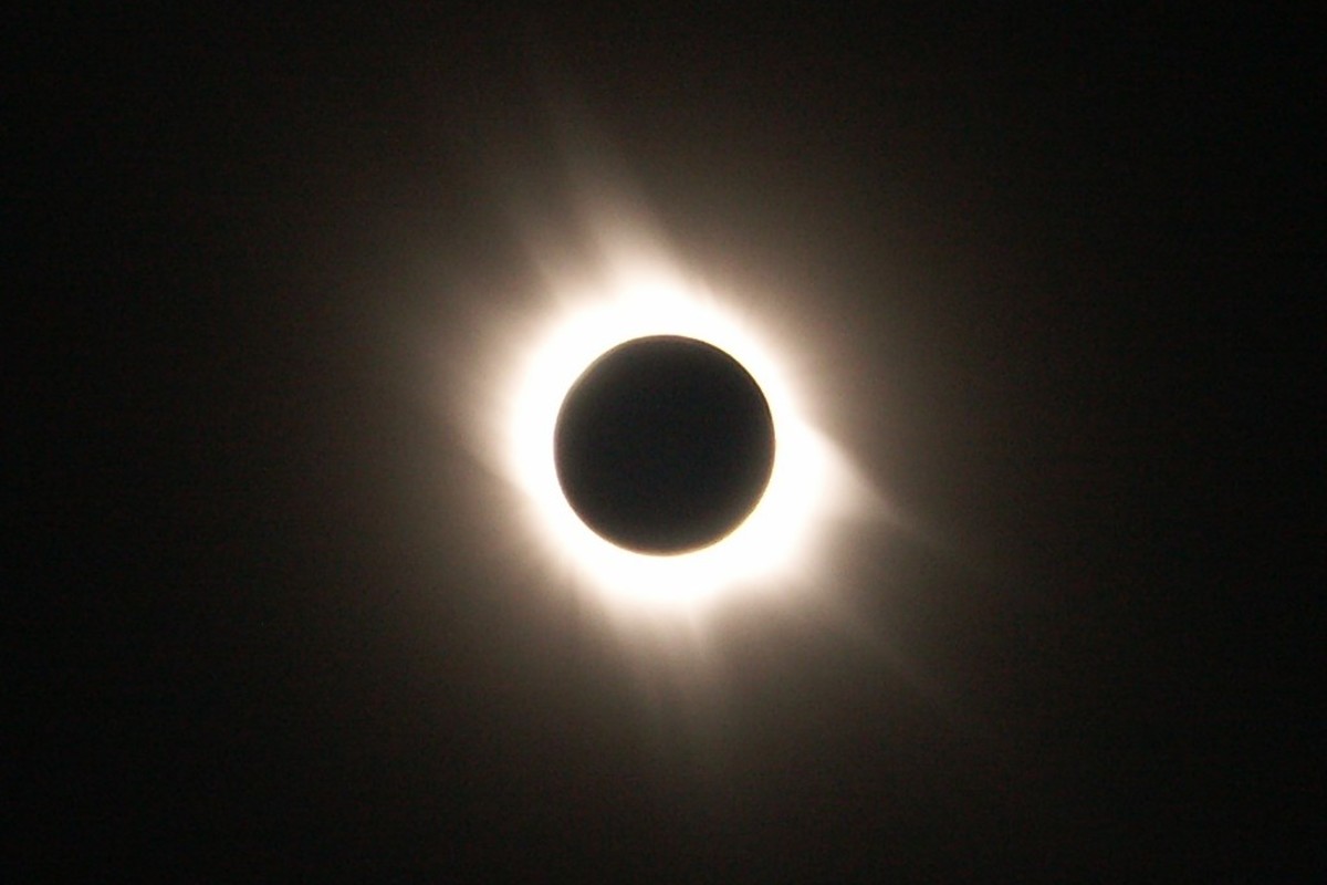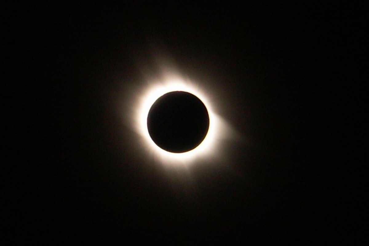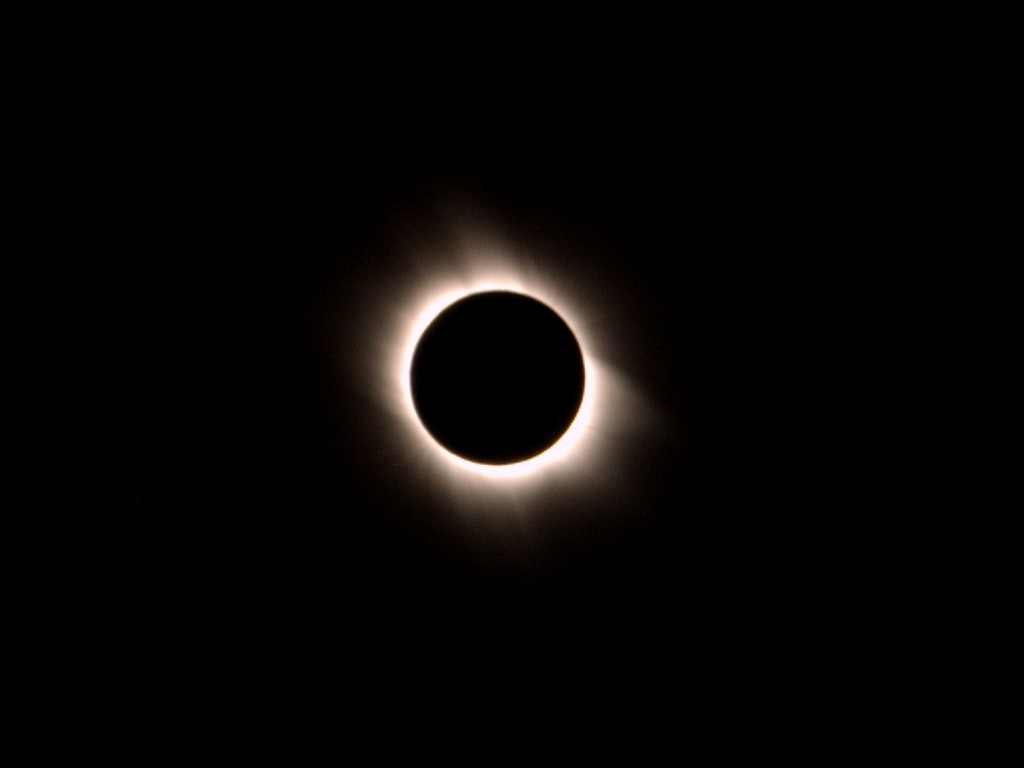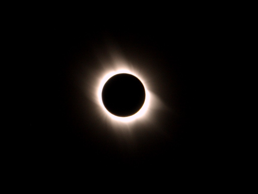 Es ist unfassbar, aber da stehe ich, eine totale Sonnenfinsternis betrachtend, und vergesse gerade all die Enttäuschung von 1999. Im ersten Moment mussten sich meine Augen nochmal adaptieren, als der letzte Rest Sonnenlicht verschwand; es war etwa so, als ob man versucht, sich in einem dunklen Raum zurechtzufinden, nachdem man das Licht ausschaltet. Ein paar Sekunden später breitete sich die Korona zur Seite aus.