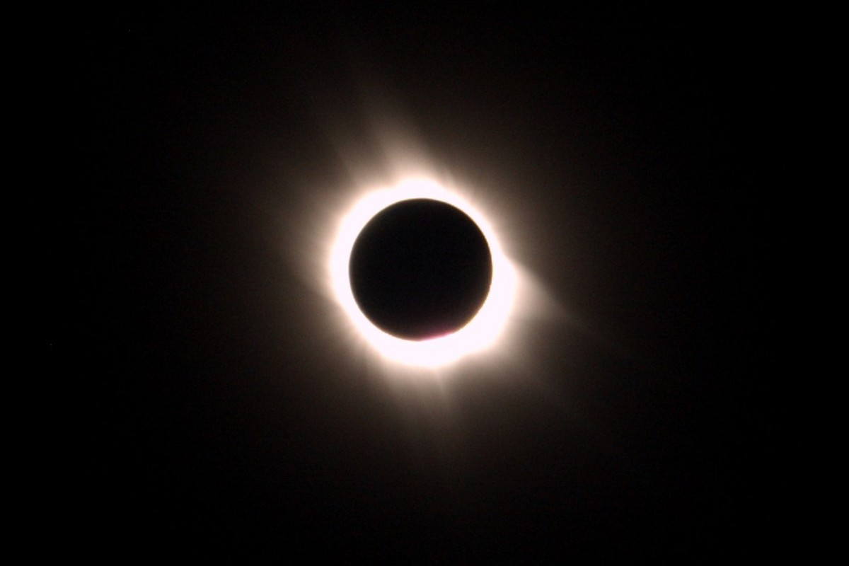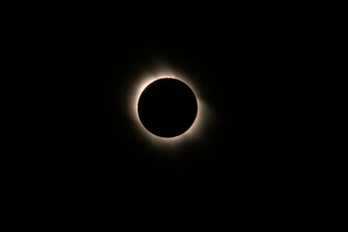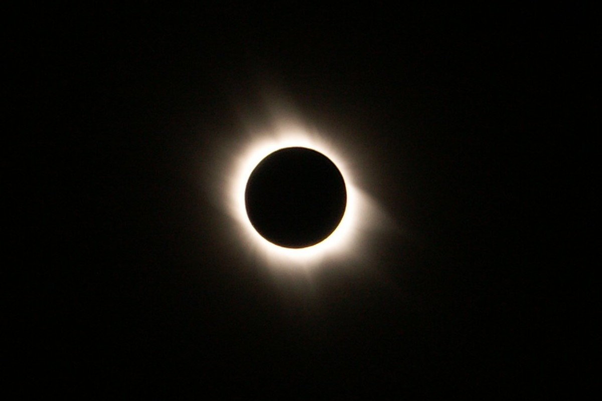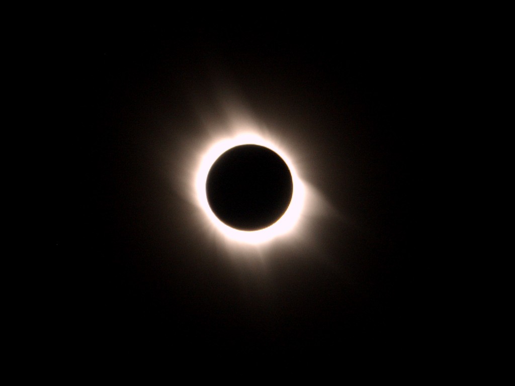 Es ist unfassbar, aber da stehe ich, eine totale Sonnenfinsternis betrachtend, und vergesse gerade all die Enttäuschung von 1999. Im ersten Moment mussten sich meine Augen nochmal adaptieren, als der letzte Rest Sonnenlicht verschwand; es war etwa so, als ob man versucht, sich in einem dunklen Raum zurechtzufinden, nachdem man das Licht ausschaltet. Ein paar Sekunden später breitete sich die Korona zur Seite aus.