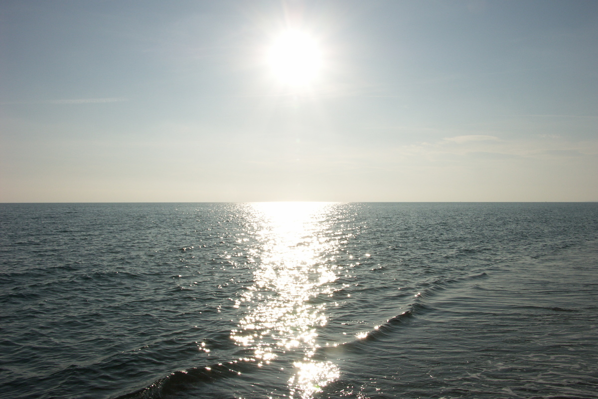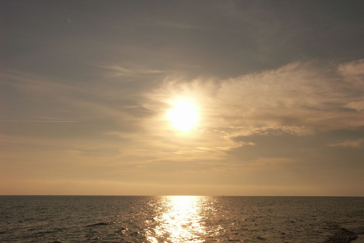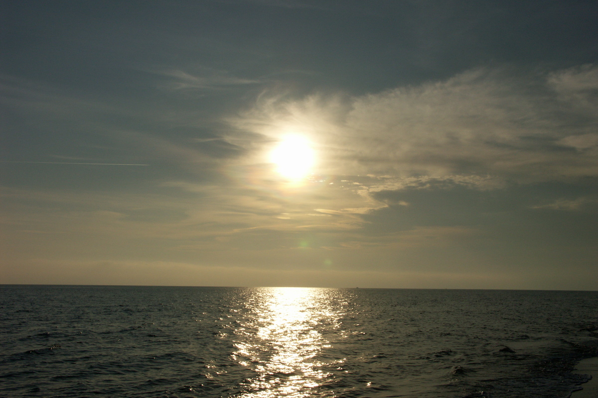 Und eben wurde es dramatisch dunkler! Das Licht wird abgedunkelt, die Vorstellung beginnt, und zum Glück müssen wir vorher keine Werbung über uns ergehen lassen. Aber Popcorn wäre nicht schlecht gewesen. Und dort über dem Meer sah ich eine waagrechte Linie, oberhalb derer es dunkler war. War dies der Mondschatten?