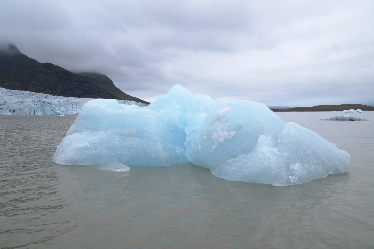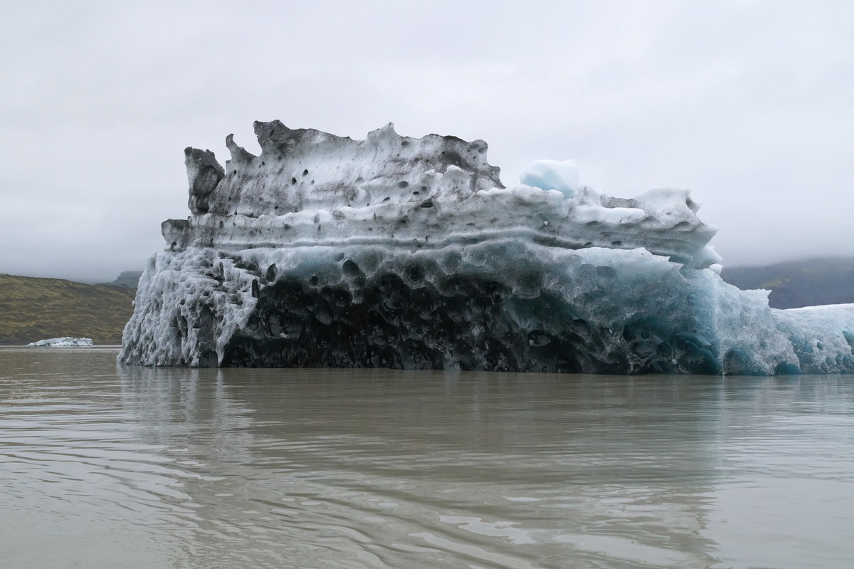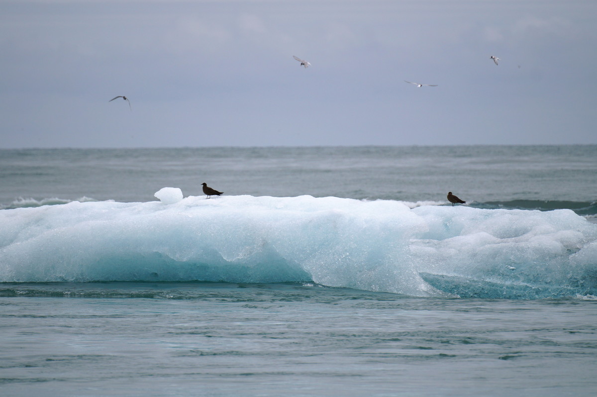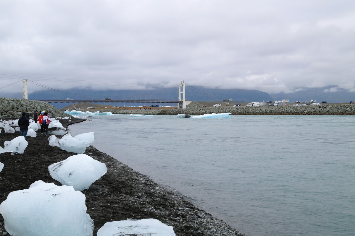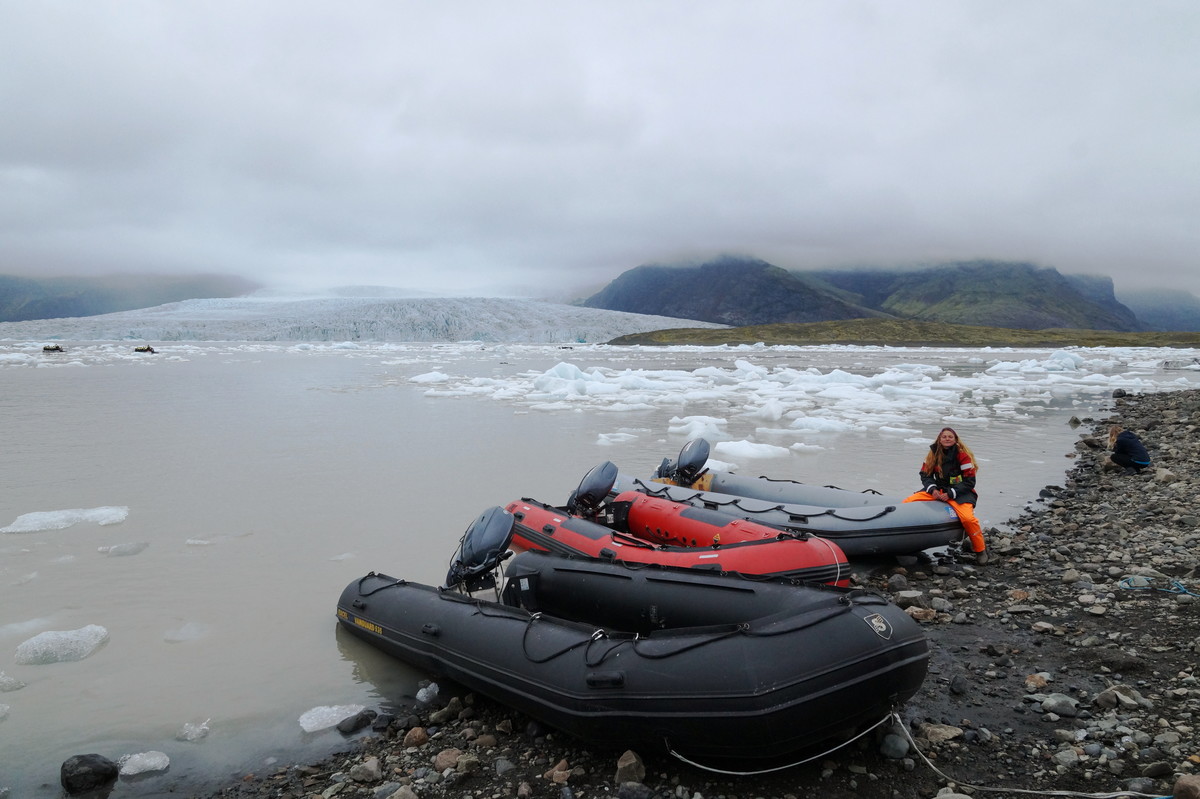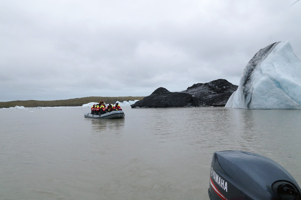 Nächster Stopp ist die Gletscherlagune Fjallsárlón. Mit Schlauchbooten lassen wir uns über die Lagune fahren und schauen uns das Ende des mächtigen Fjallsjökull an. Auf einmal gibt es einen Knall, und ein Stück des Gletschers bricht ab und fällt nicht weit vor uns in die Lagune. Nach diesem Erlebnis machen wir an der Mündung des Jökulsárlón noch einmal Halt und beobachten, wie kleine Eisberge ins Meer gespült werden. Interessant: Die Lagune ist im James-Bond-Film "Stirb an einem anderen Tag" zu sehen; man ließ sie zufrieren, indem der Ausfluss blockiert wurde.