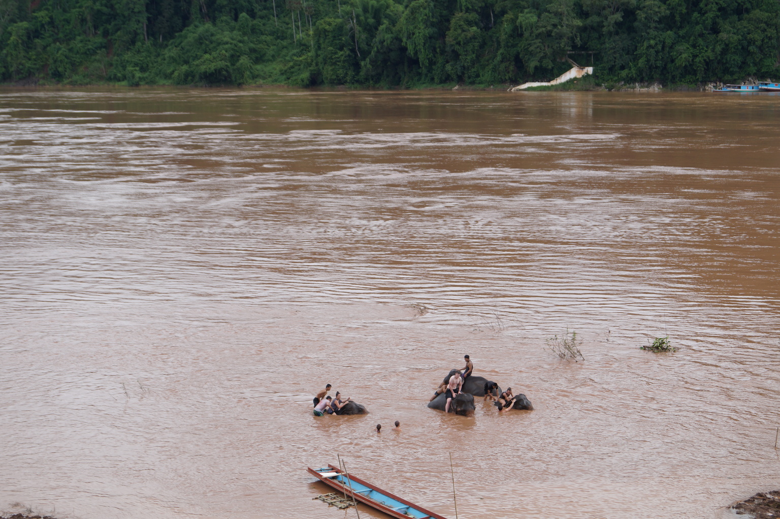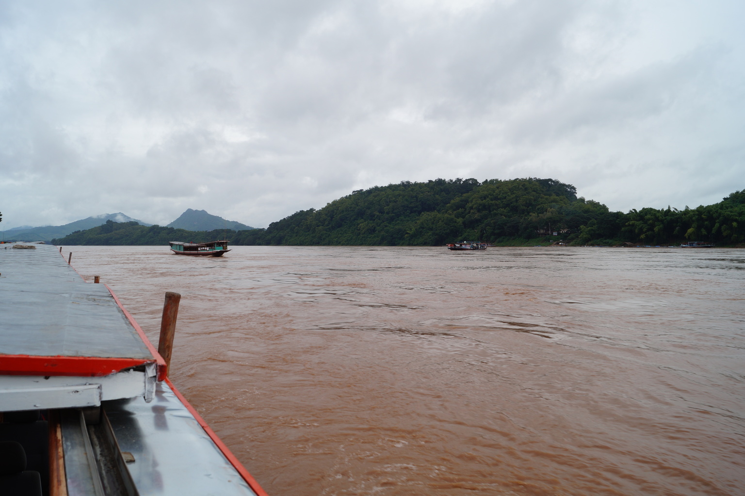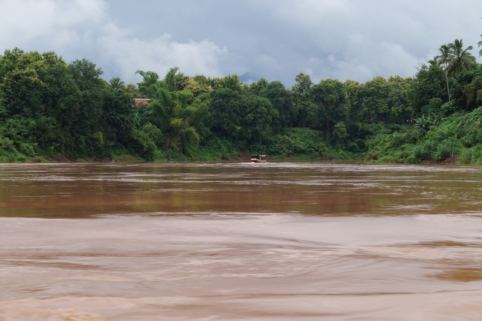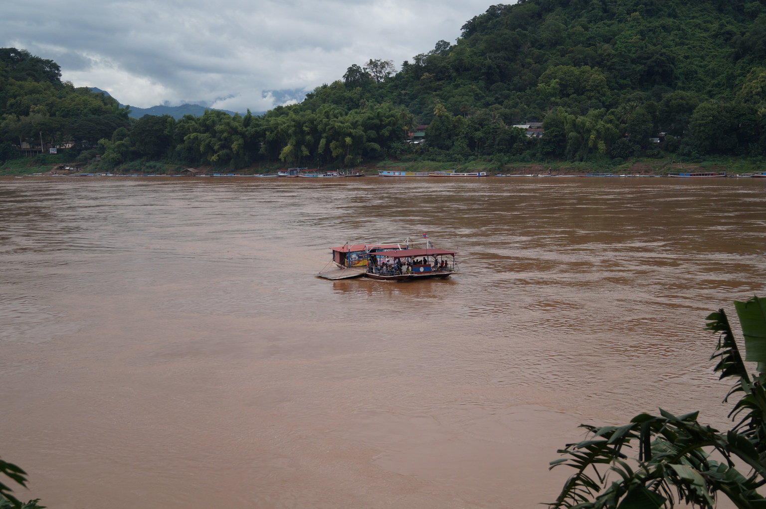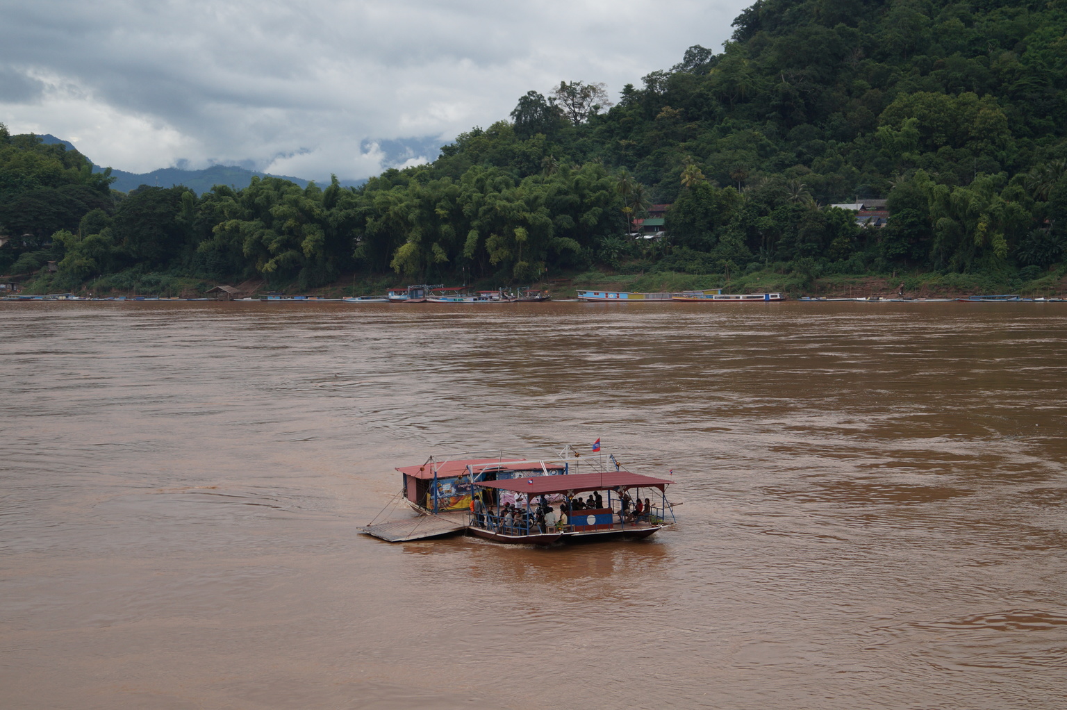 Die Fahrt über den Mekong ist immer ein Erlebnis; der gelbe Fluss schlängelt sich durch sattgrüne Landschaften.