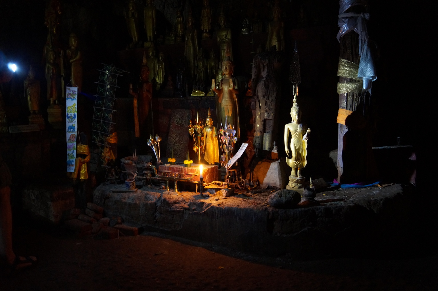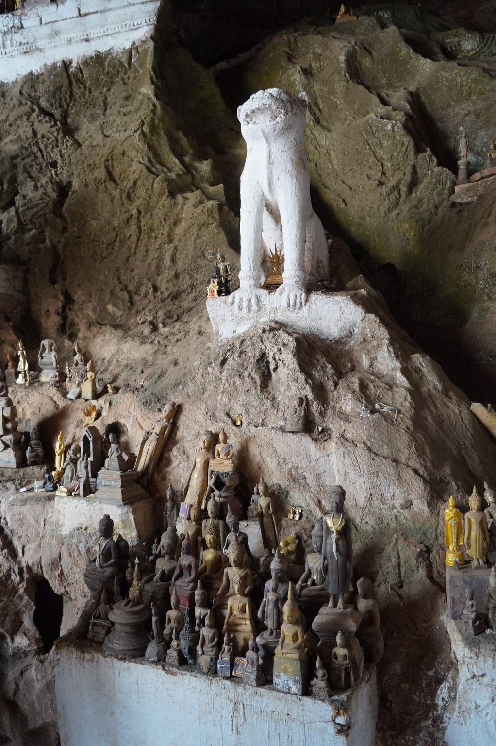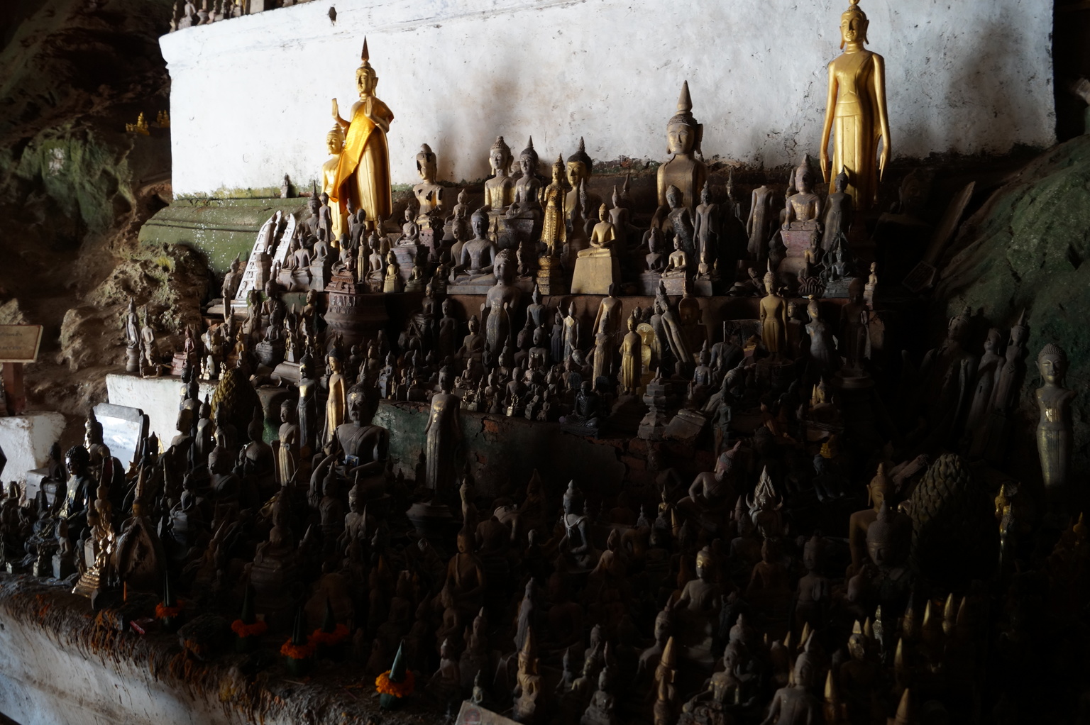 • Pak Ou, wo es eine Höhle in der Felswand gibt, gefüllt mit Buddha-Statuen.