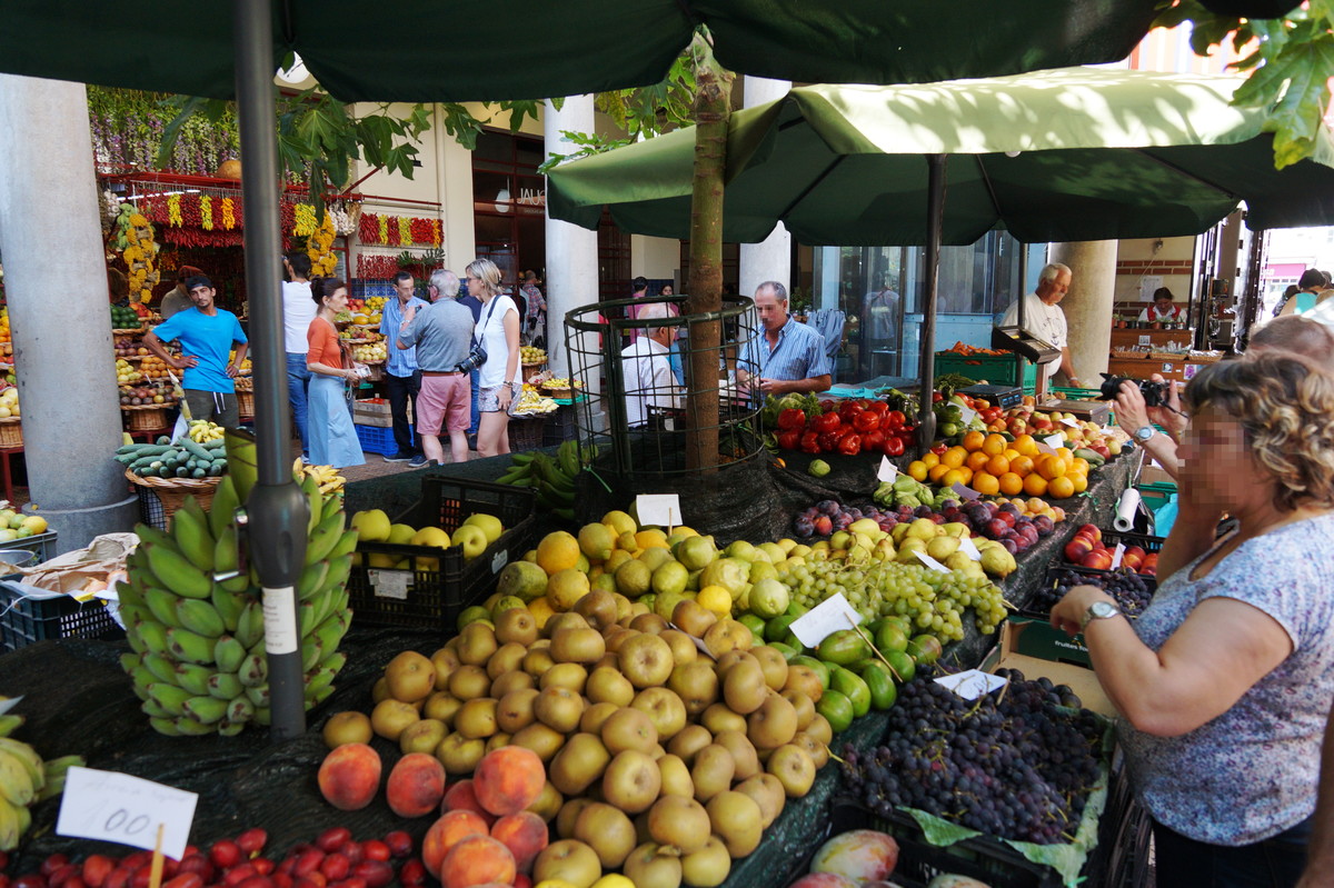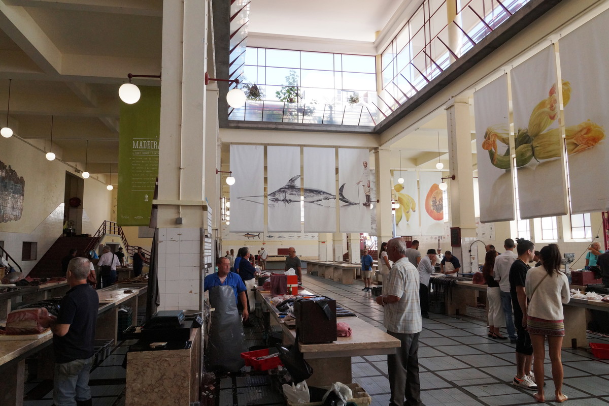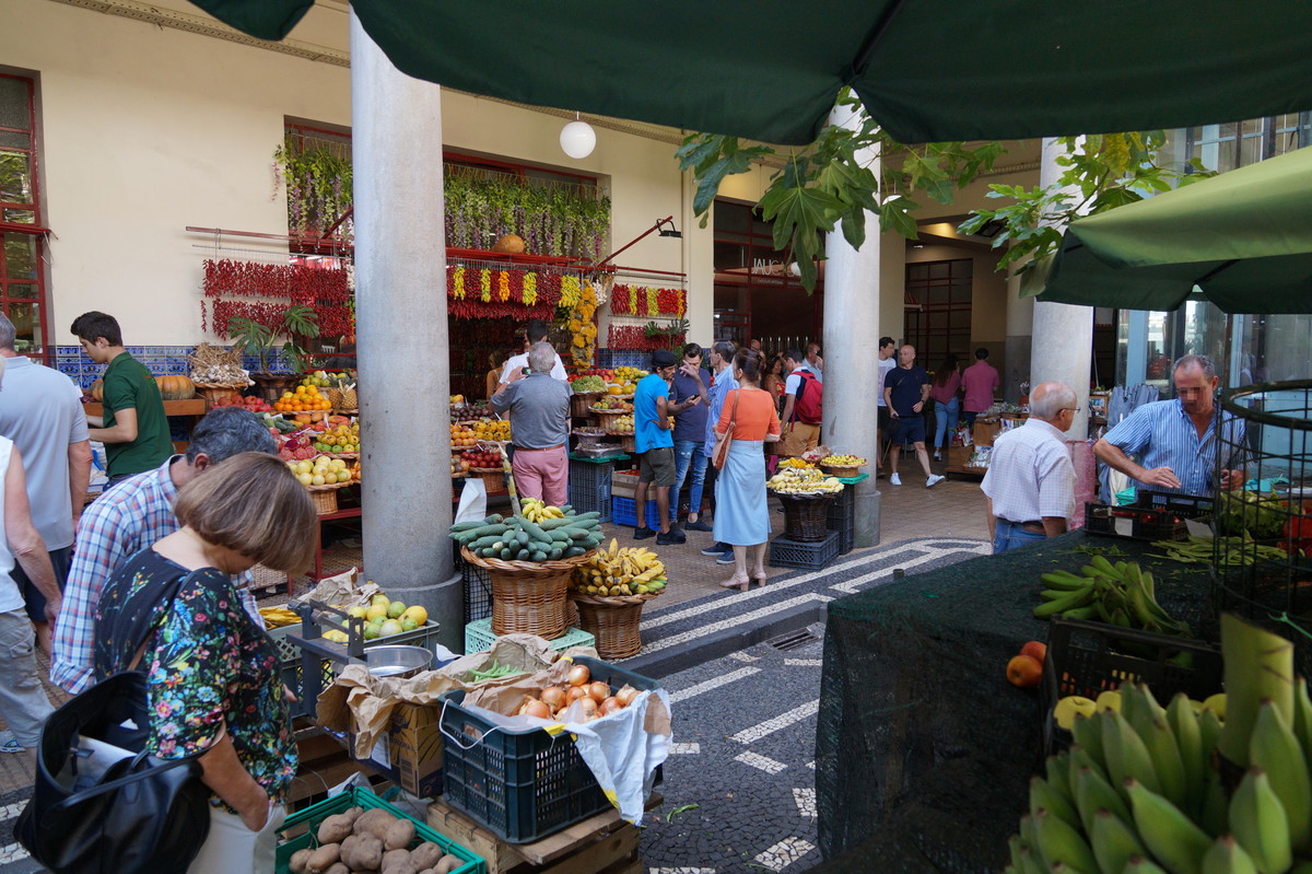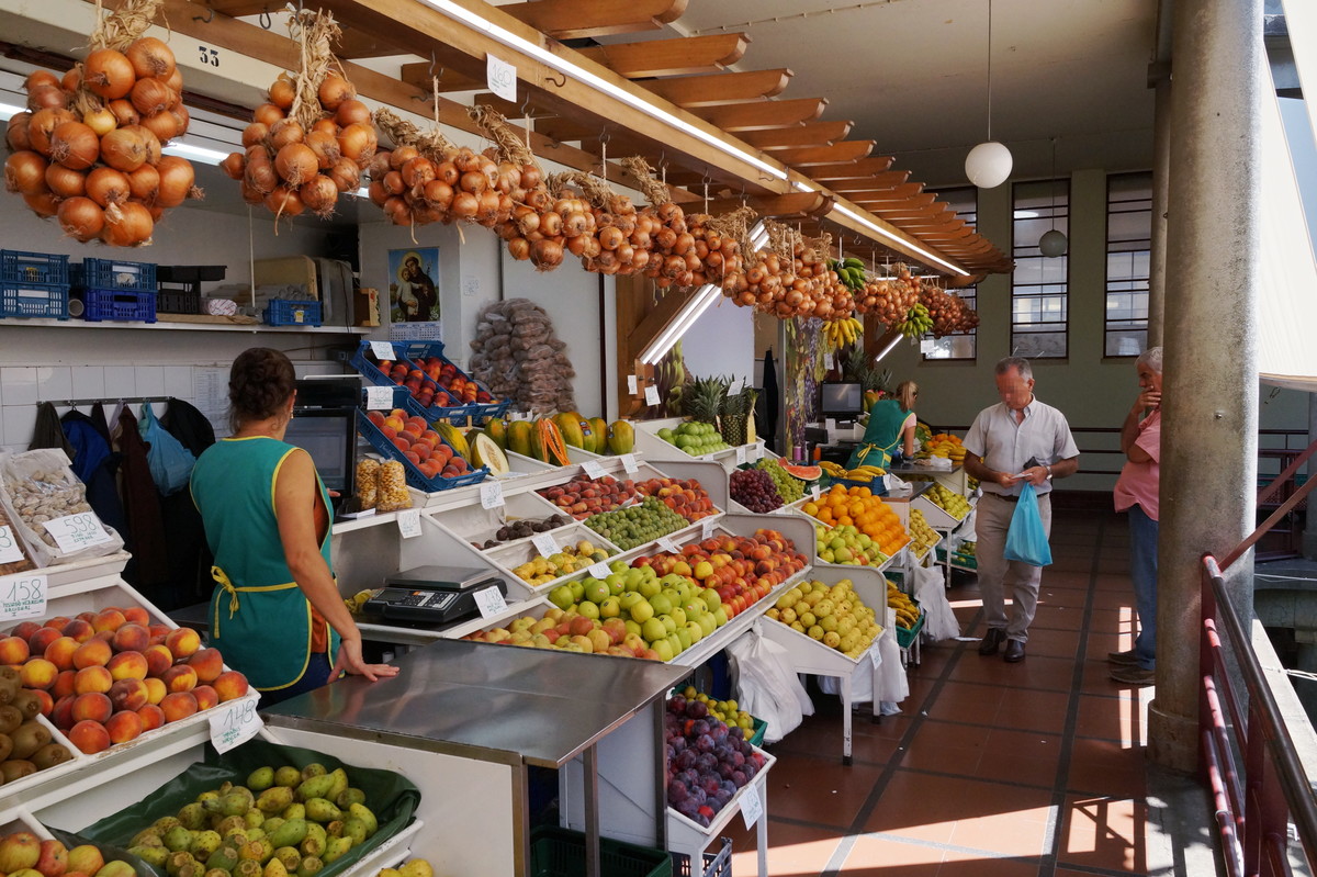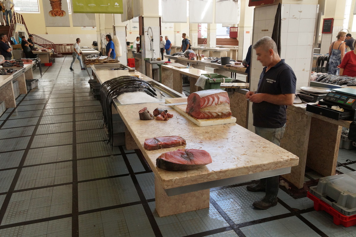 Der Avenida Arriaga entlang gelangen wir an die Katedrale (Sé do Funchal), dann weiter bis zur Markthalle. Dort gibt es viele Obst- und Gemüsestände und im hinteren Teil den Fischmarkt.