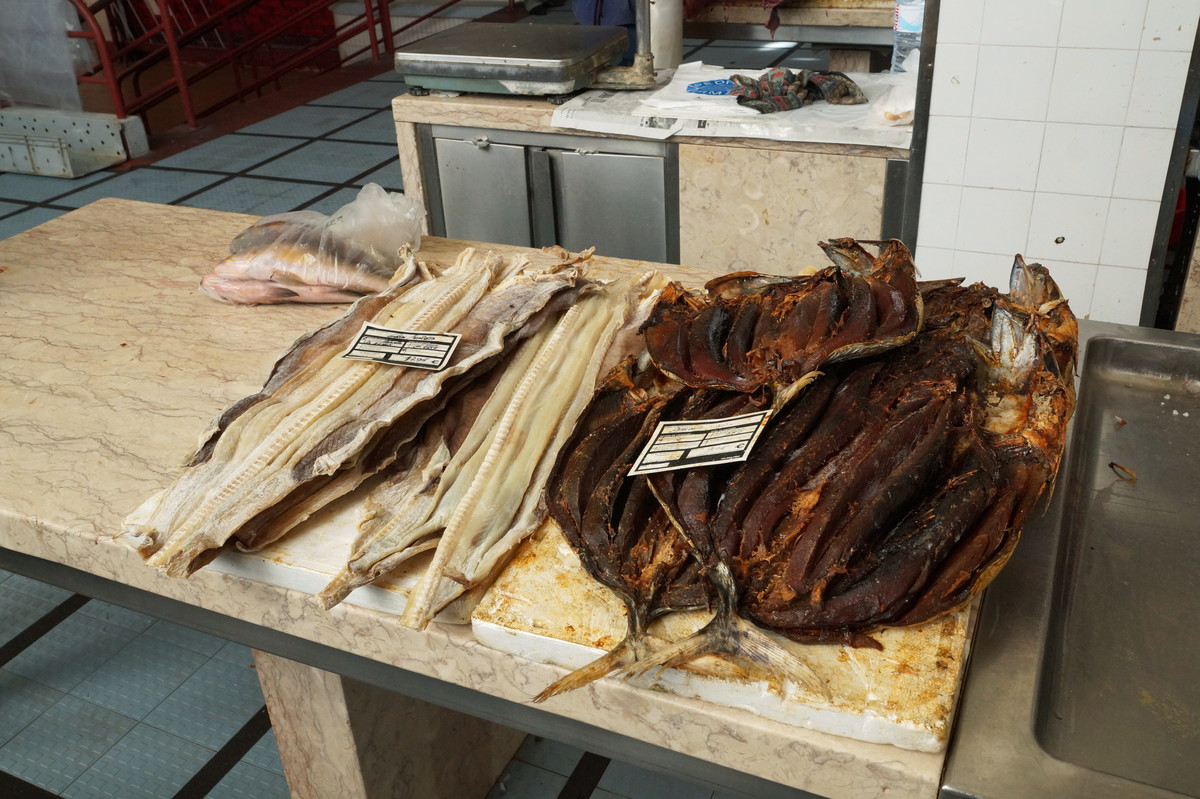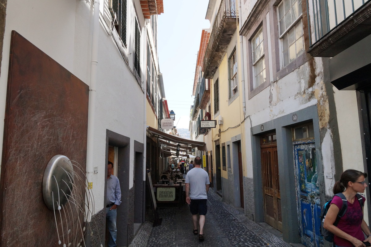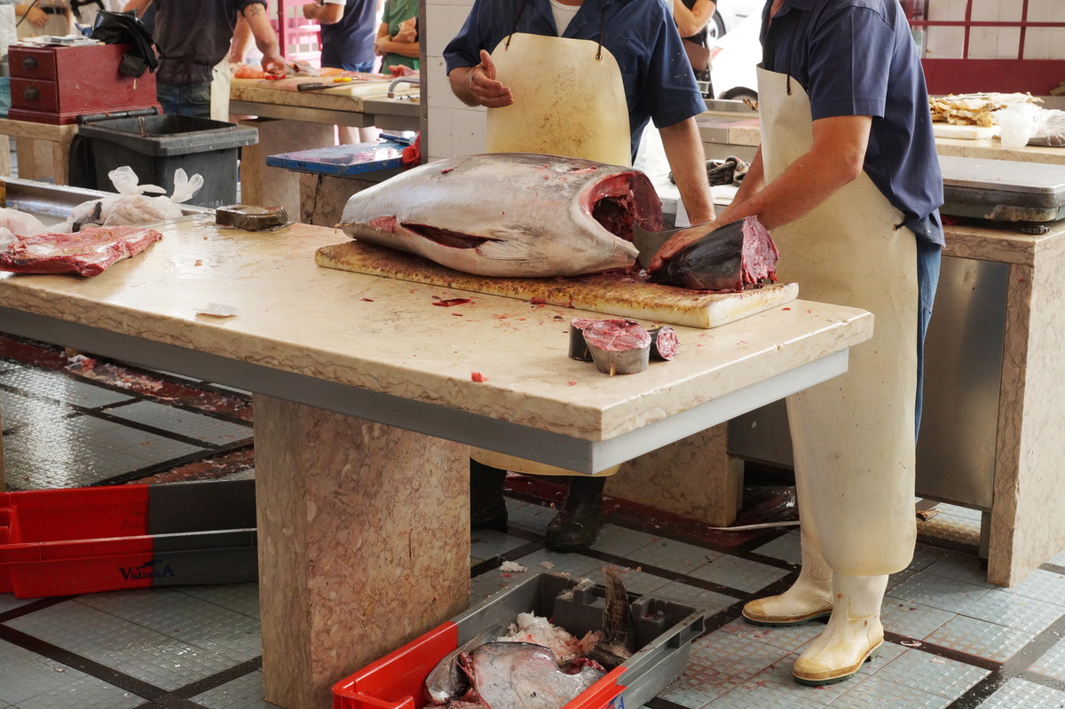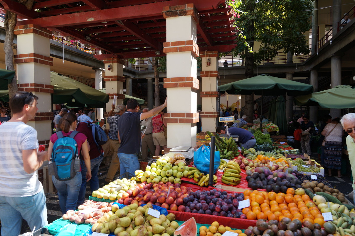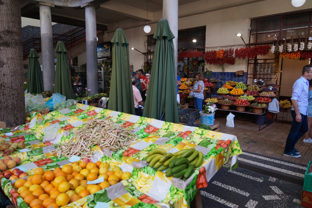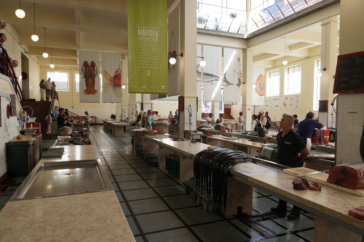 Der Avenida Arriaga entlang gelangen wir an die Katedrale (Sé do Funchal), dann weiter bis zur Markthalle. Dort gibt es viele Obst- und Gemüsestände und im hinteren Teil den Fischmarkt.