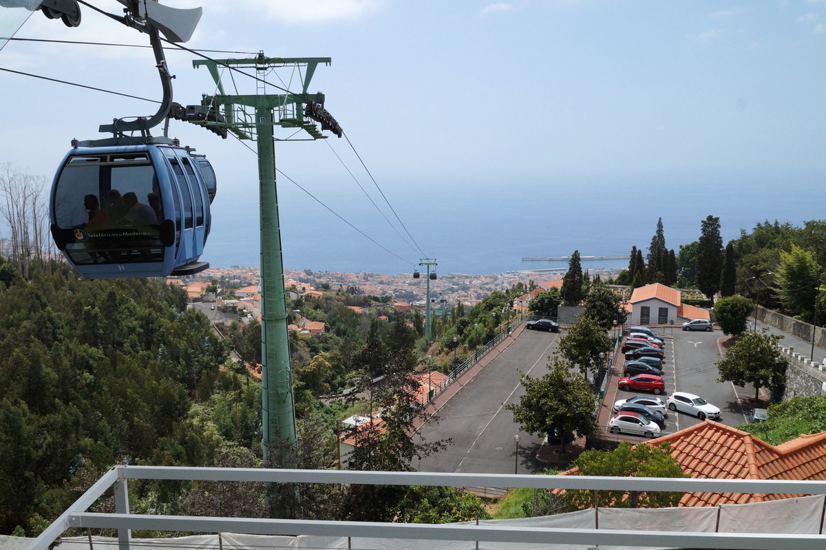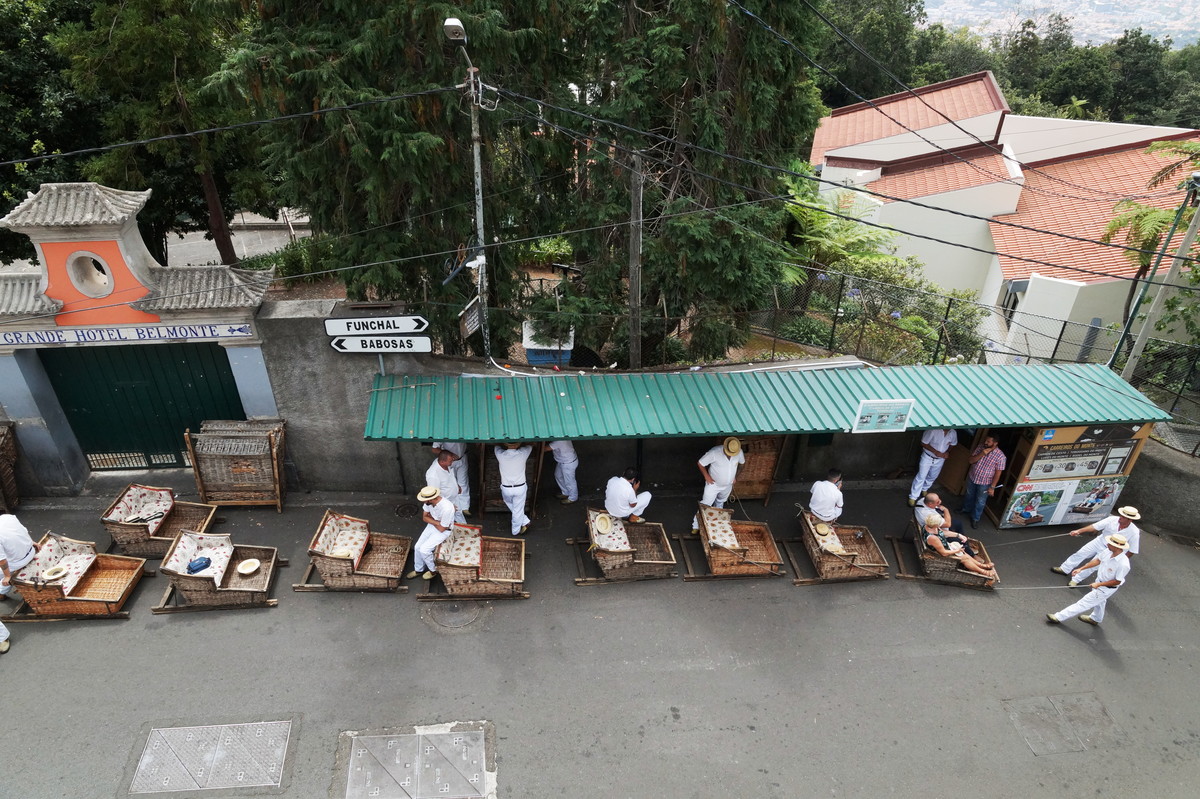 Ein Stückchen laufen wir noch ostwärts, dann kehren wir um, um zur Talstation der Seilbahn zu kommen. Von dort geht es über die Dächer Funchals zum Vorort Monte. Die Kirche Nossa Senhora ist ganz nett, aber der eigentliche Grund, hier hinaufzufahren (abgesehen von der tollen Aussicht über Funchal) ist die 2 km lange Korbschlittenfahrt, die schon seit Anfang des 19. Jahrhunderts - anfangs als öffentliches Transportmittel - betrieben wird.