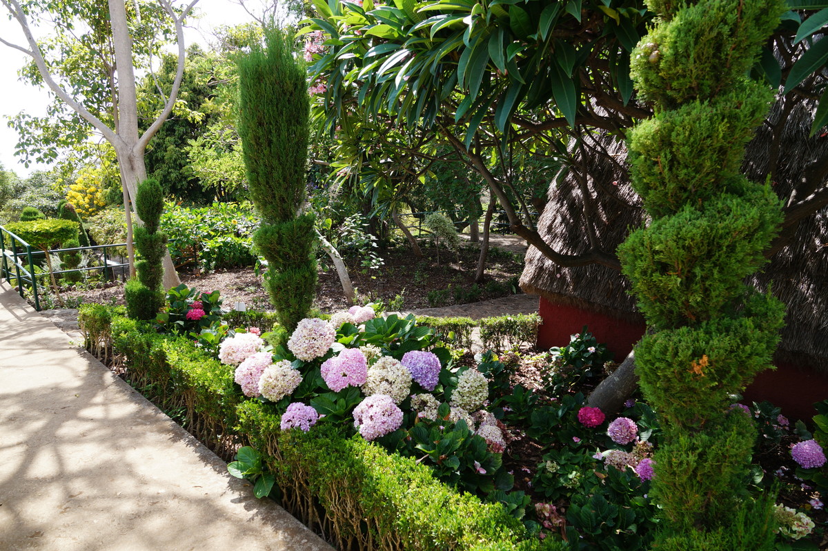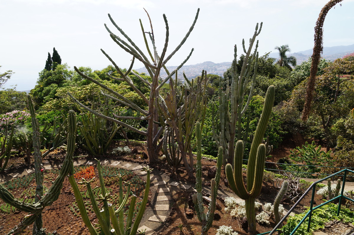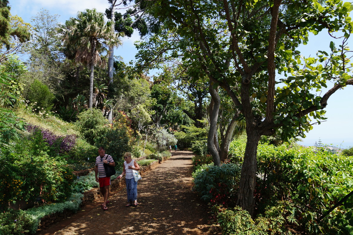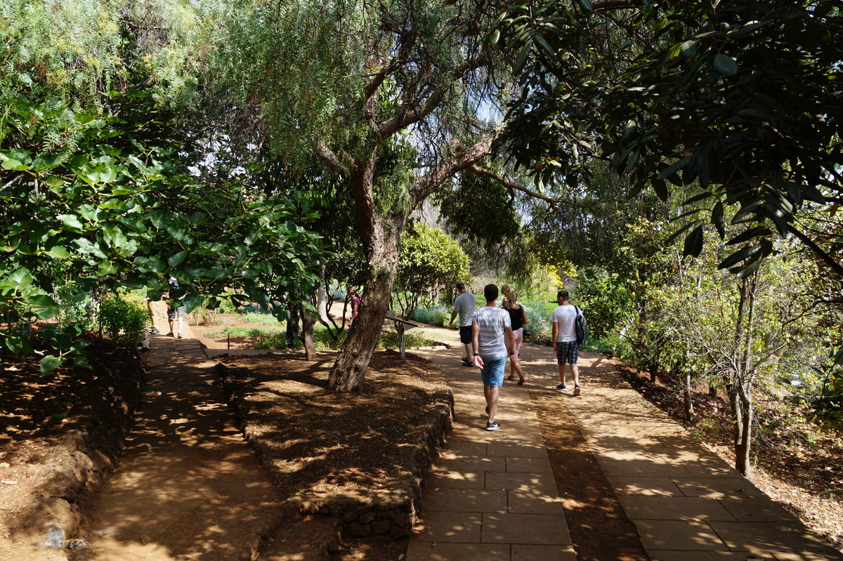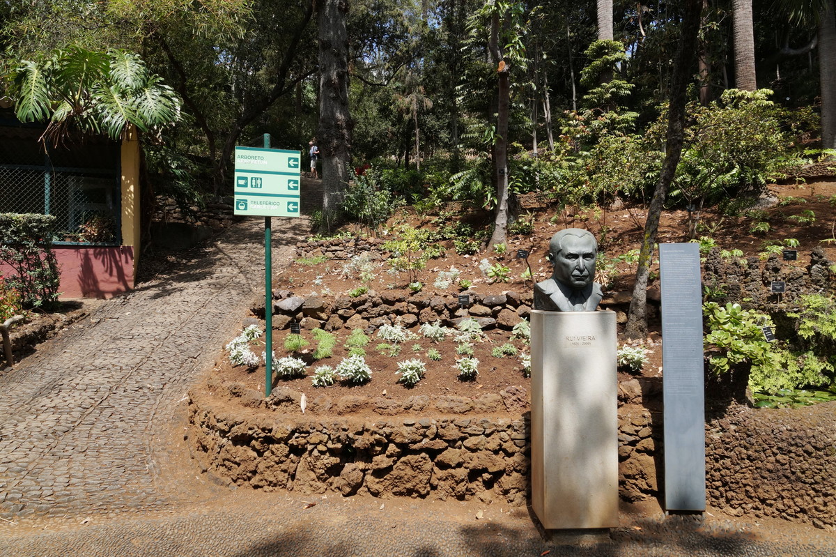 Nach der Schlittenfahrt geht es weiter zum Botanischen Garten. Hier laufen wir zickzack durch die Blumenfelder, an exotischen Pflanzen und Bäumen vorbei und genießen wieder die Aussicht über Funchal. nach einer kurzen Kaffeepause setzen wir die Besichtigung fort und verlassen den Garten wieder. Der erste Leiter des Gartens war ein Engenheiro Rui Vieira; diesem Wort begegnet man häufiger in der Stadt. "Engenheiro" ist aber kein Name, sondern die portugiesische Variante von "Ingenieur", was hier als Titel (wie Doktor) geführt wird.