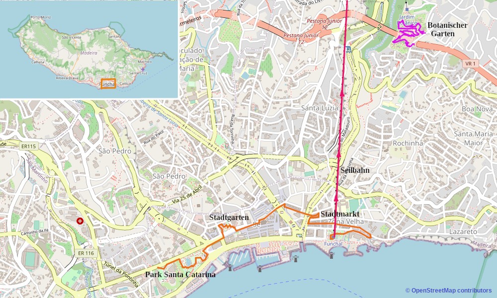 In Funchal setzt uns unser Bus am Parque Santa Catarina ab. Dort findet man eine Statue der Kaiserin Elisabeth von Österreich-Ungarn, den meisten eher als "Sissi" bekannt. Durch den Park hindurch gelangen wir auf die Straße Avenida Arriaga, der wir bis zum Stadtpark (Parque Municipal do Funchal) folgen. Der Park ist für seine exotischen Pflanzen, insbesondere Bäume bekannt.