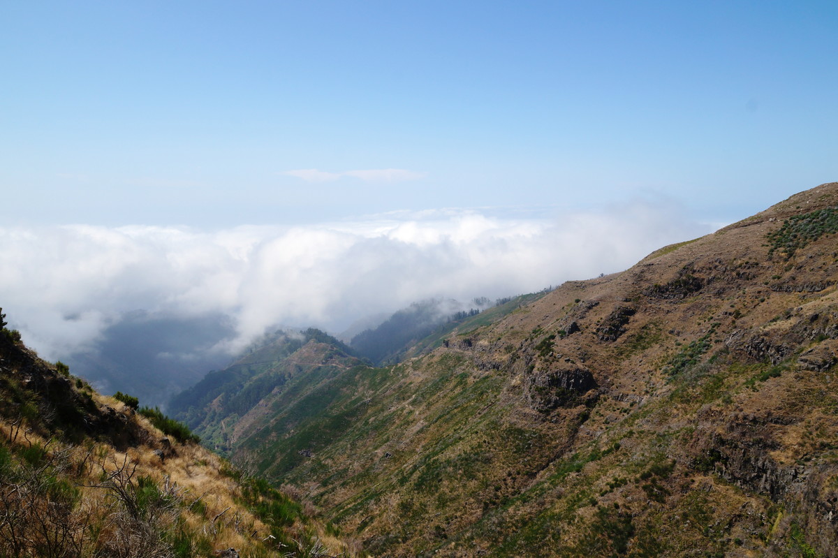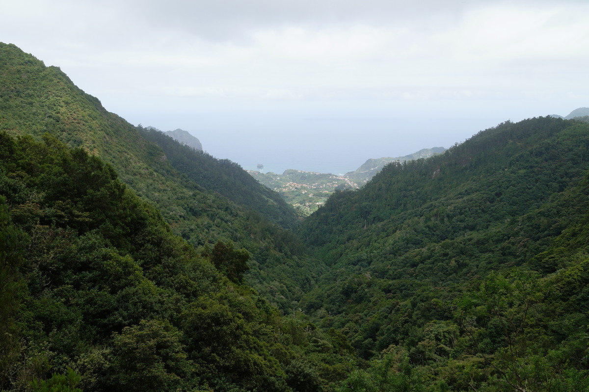 Die Wanderung nimmt fast 4,5 Stunden in Anspruch, belohnt uns aber immer wieder mit schönen Ausblicken hinab bis zur Küste. Kurz vor Ende teilt sich die Levada auf; wir folgen der Levada da Portela weiter. Am Ende des Wegs wartet wieder ein Kaffee im Lokal Portela a Vista.