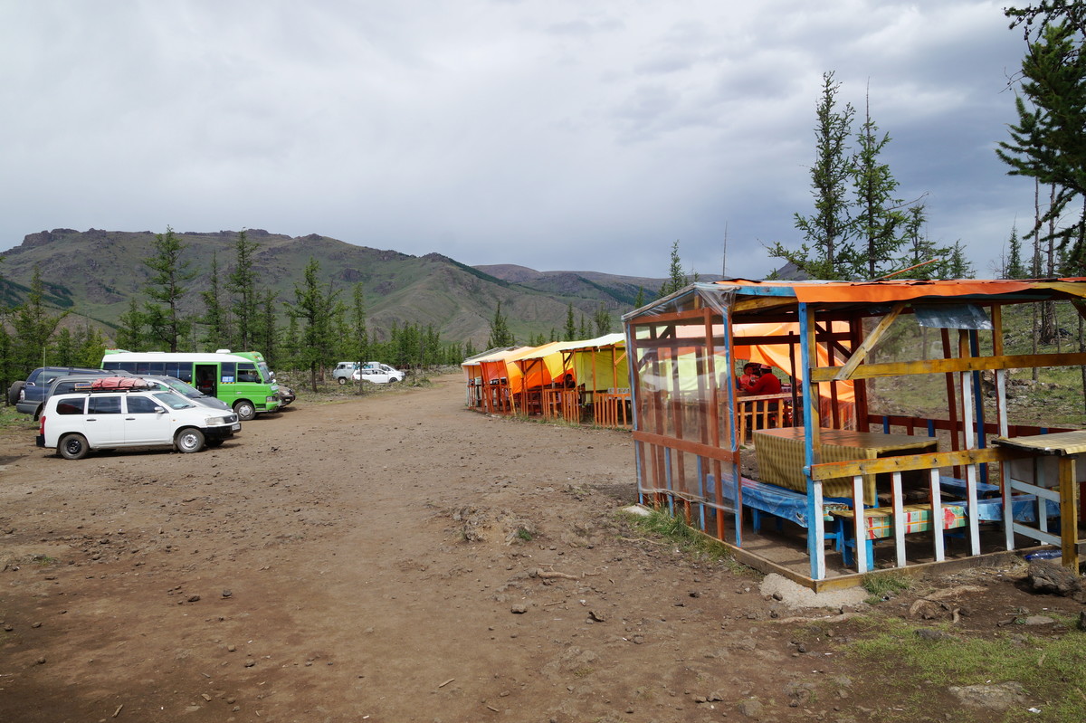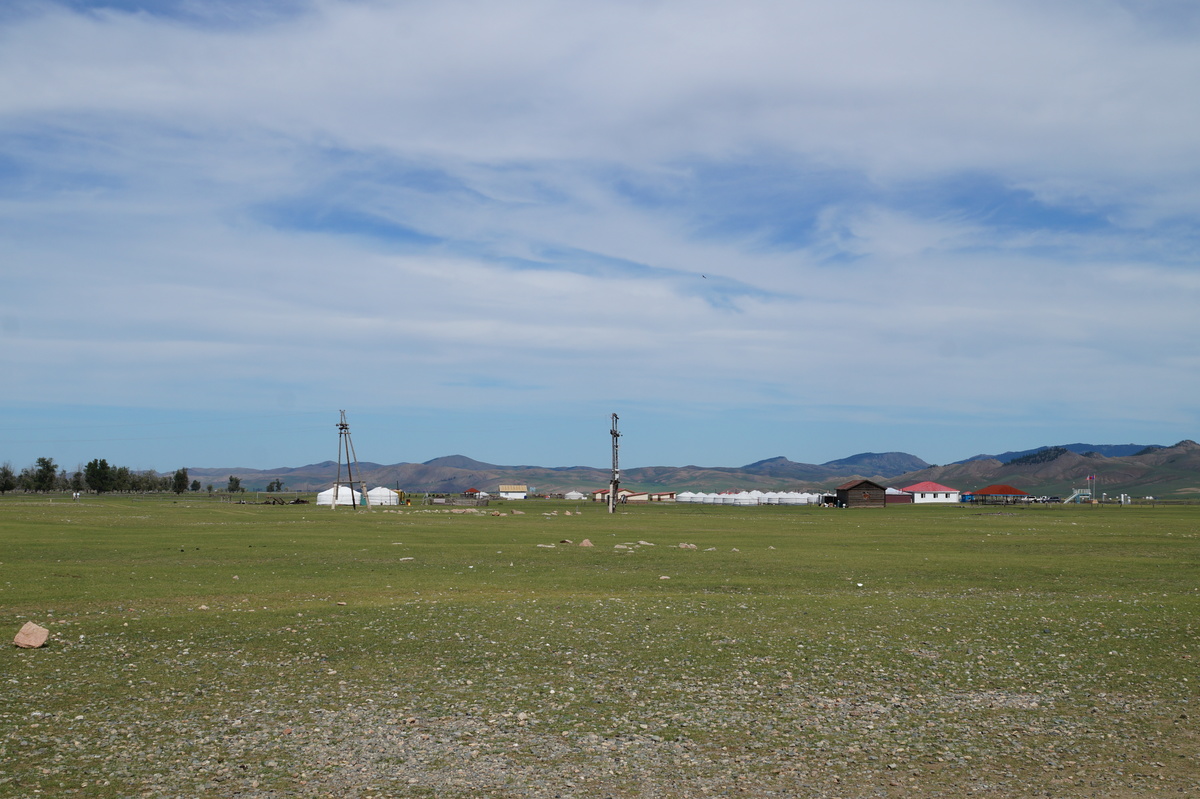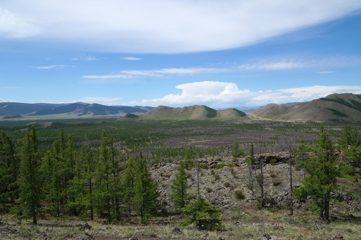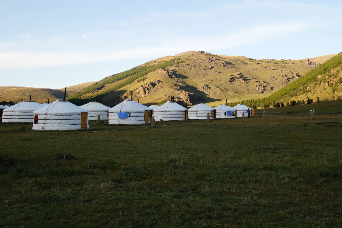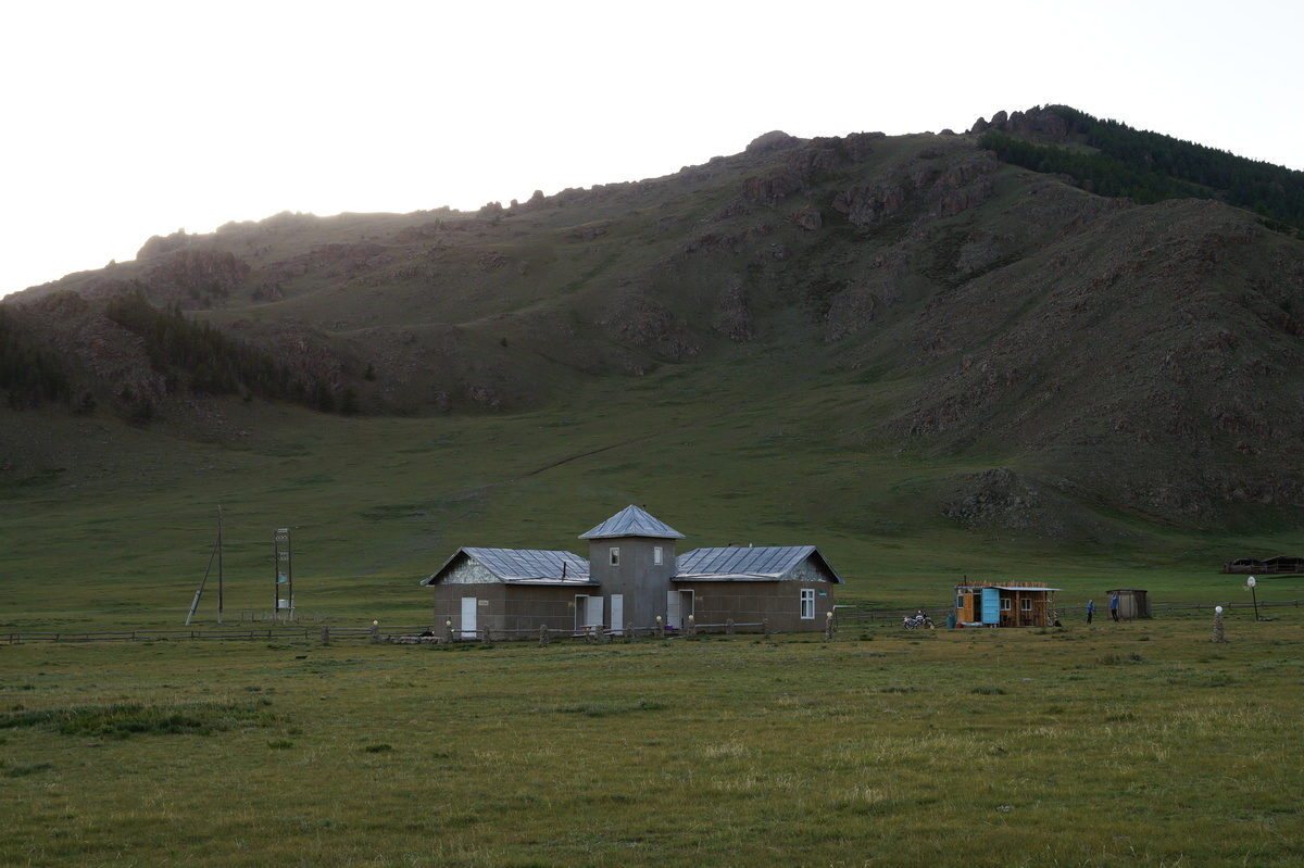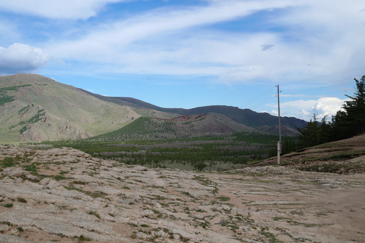 Khankhar Uul (Bulgan). Mittags gegen 14:00 Uhr erreichen wir das nächste Ger-Camp Khankhar Uul. Um den Berg herum erreicht man das Khamba-Kloster (Erdene Khambiin Khiid). Der Bergrücken hinter dem Camp ist der Khögnö Khan Uul.