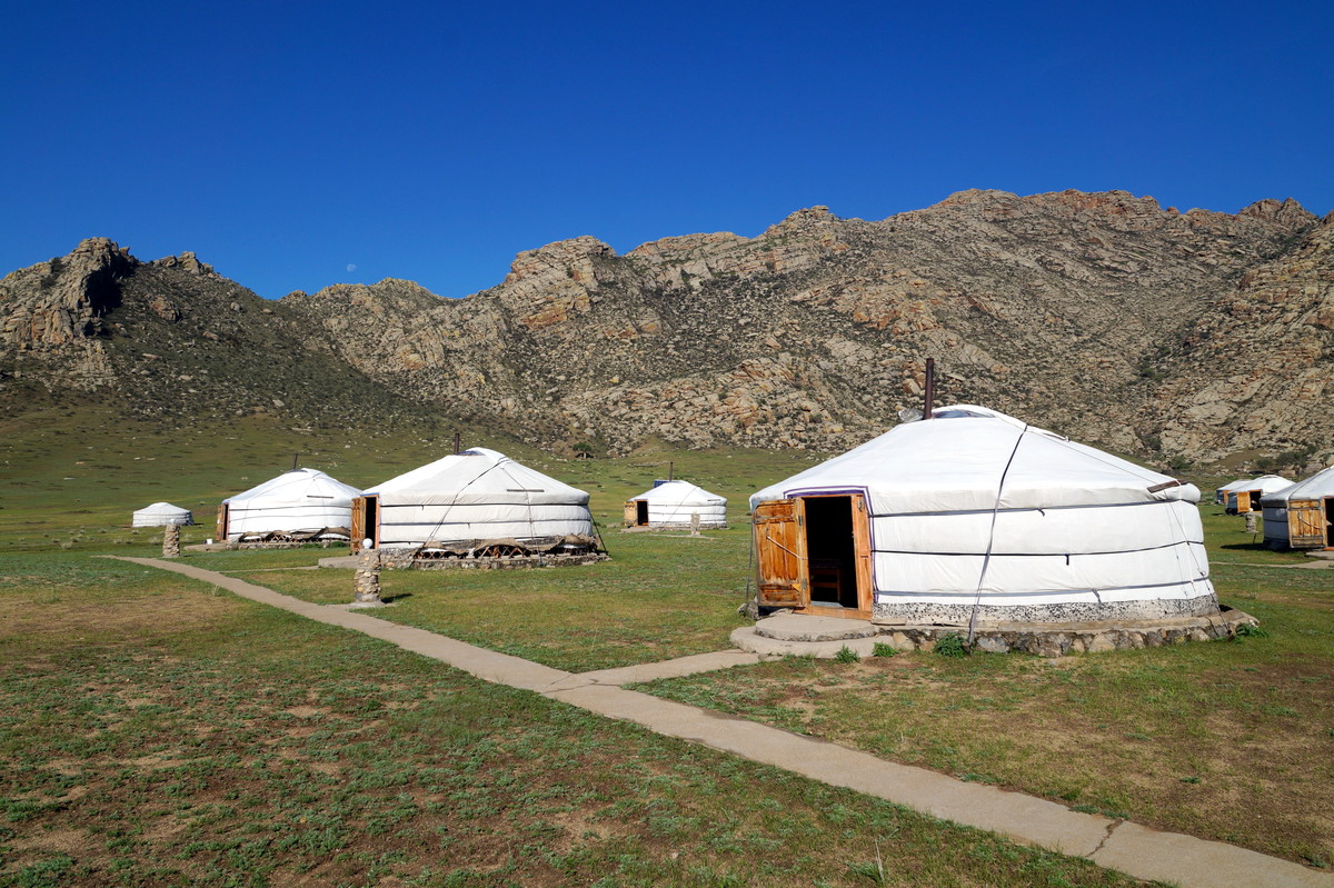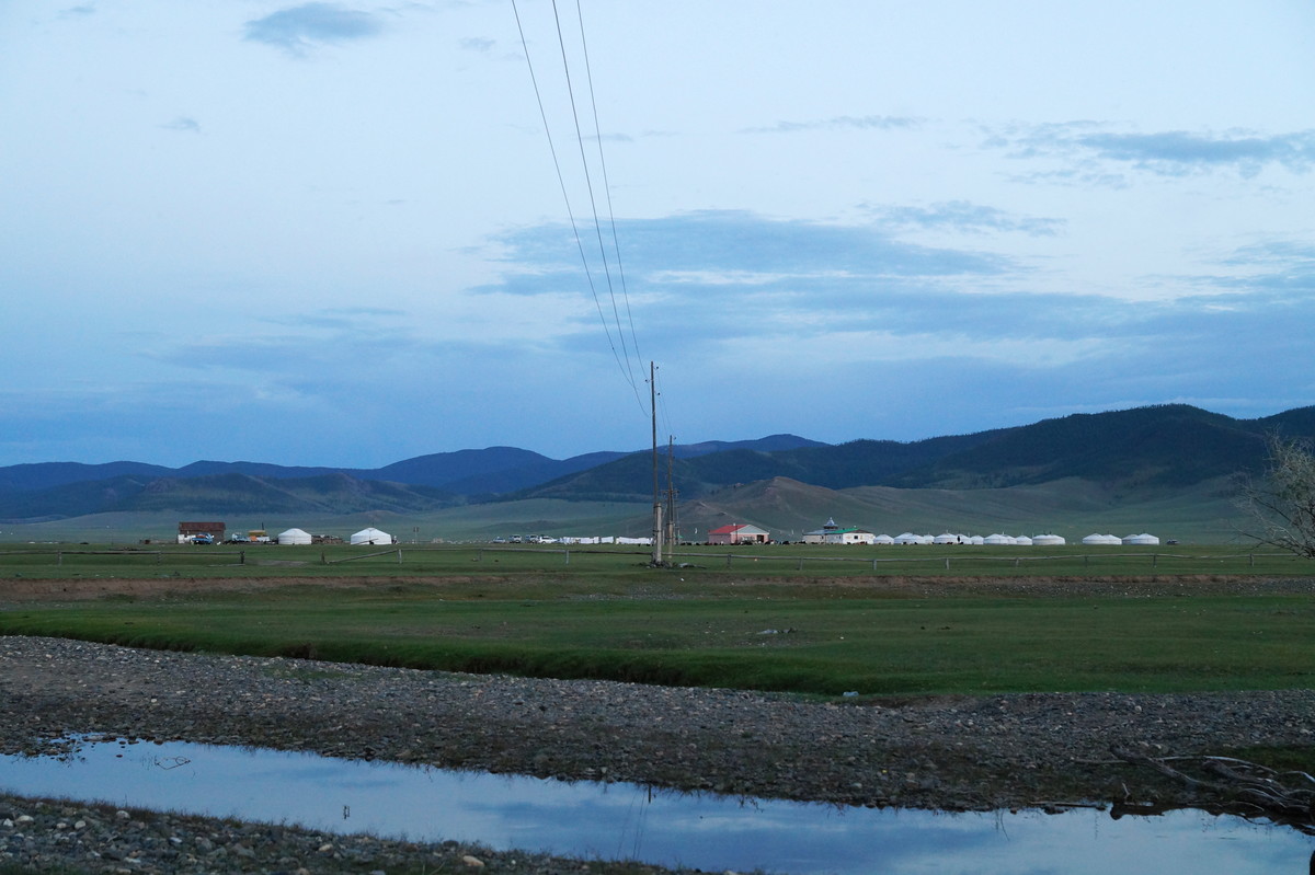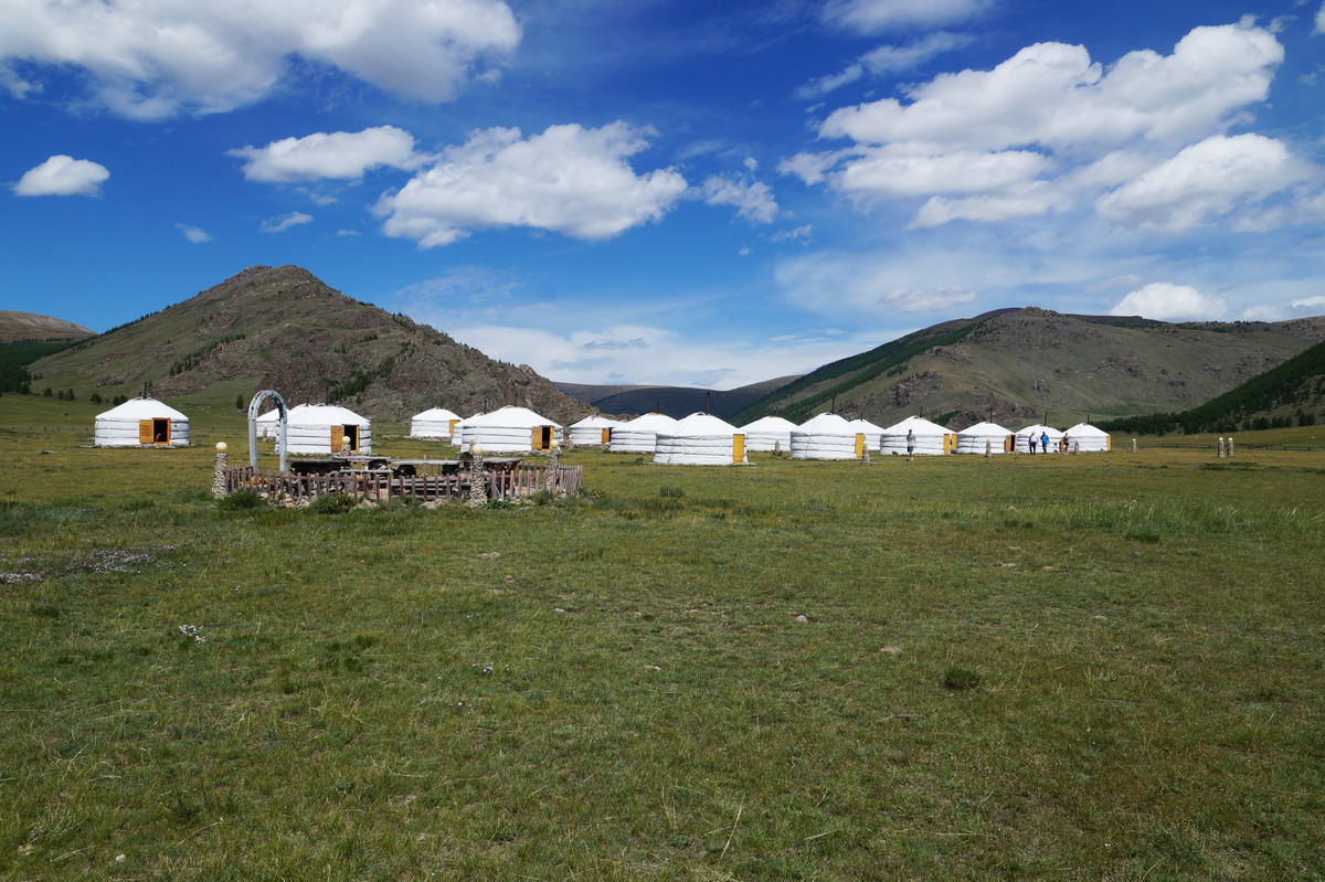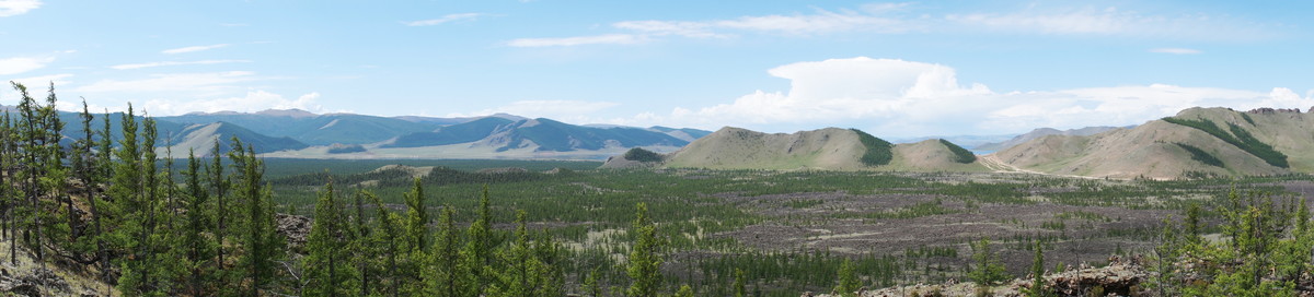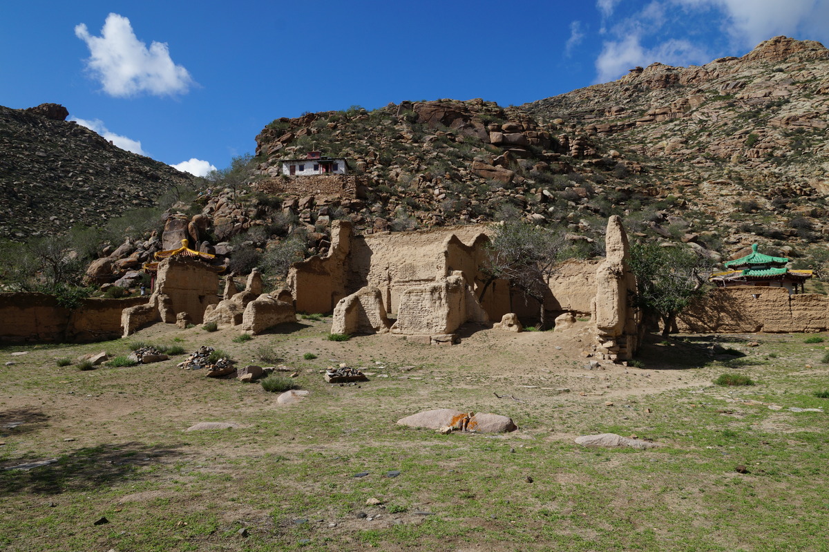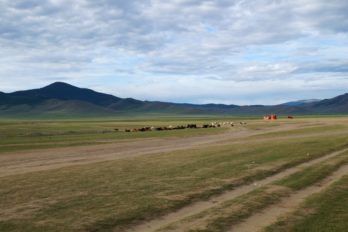 Khankhar Uul (Bulgan). Mittags gegen 14:00 Uhr erreichen wir das nächste Ger-Camp Khankhar Uul. Um den Berg herum erreicht man das Khamba-Kloster (Erdene Khambiin Khiid). Der Bergrücken hinter dem Camp ist der Khögnö Khan Uul.