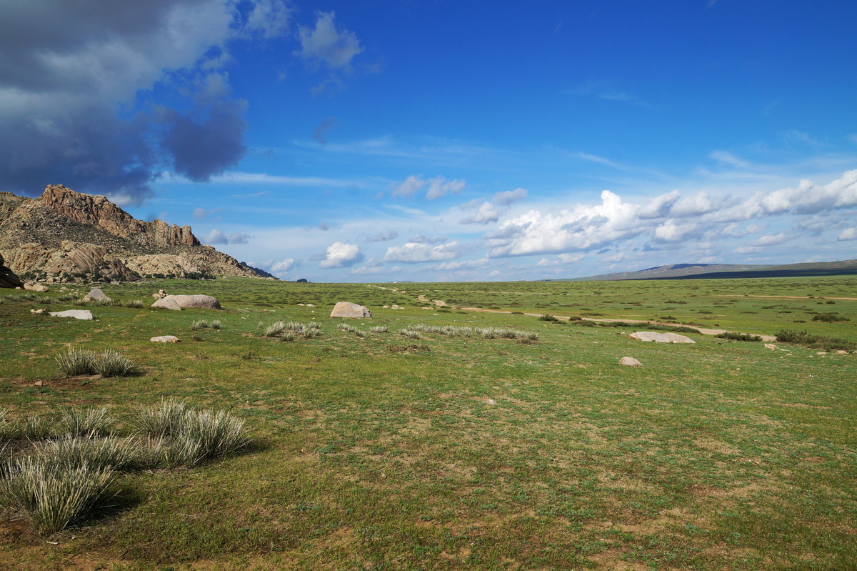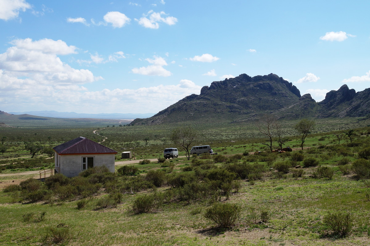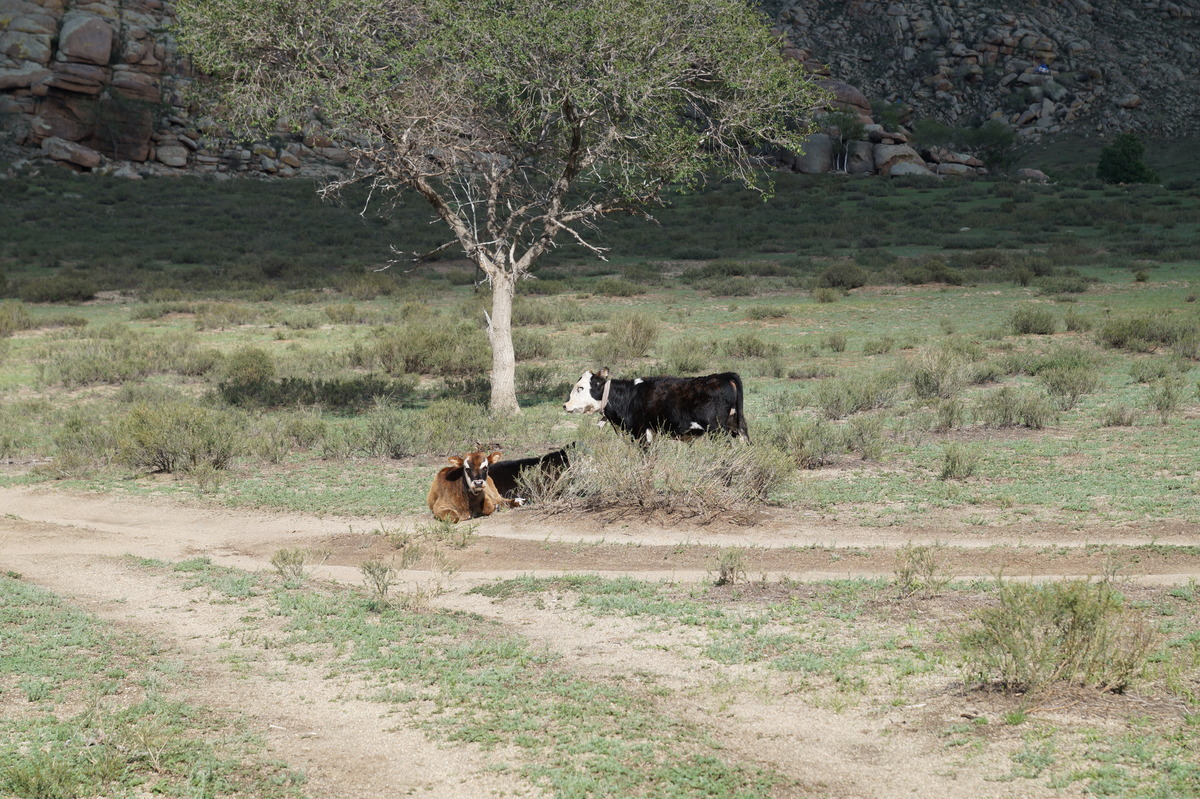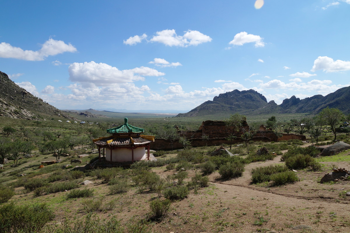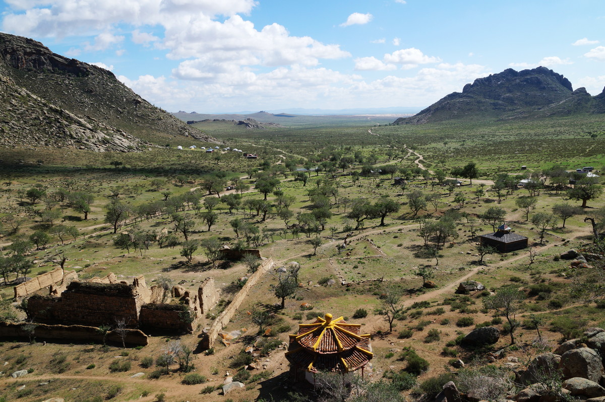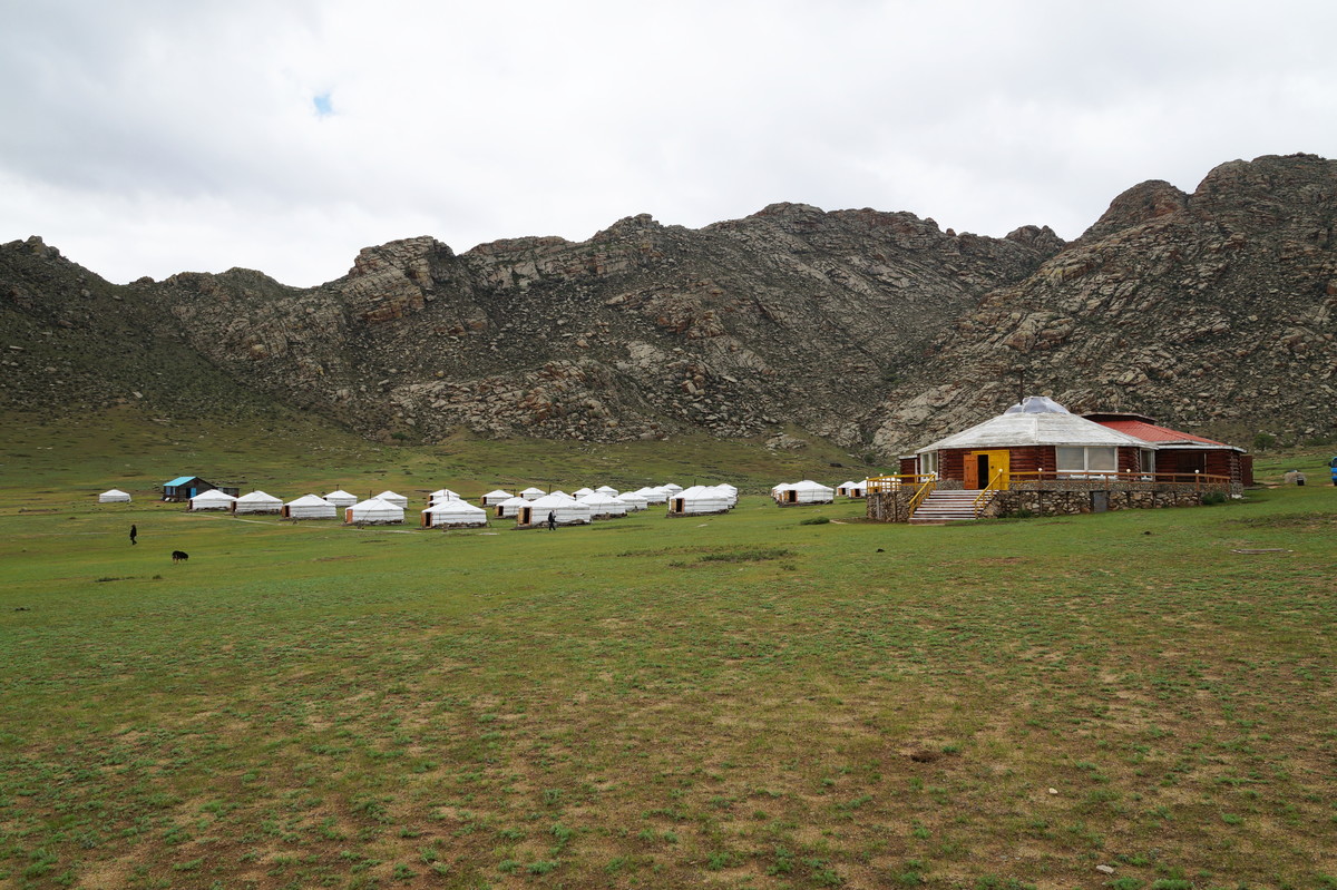 Khankhar Uul (Bulgan). Mittags gegen 14:00 Uhr erreichen wir das nächste Ger-Camp Khankhar Uul. Um den Berg herum erreicht man das Khamba-Kloster (Erdene Khambiin Khiid). Der Bergrücken hinter dem Camp ist der Khögnö Khan Uul.