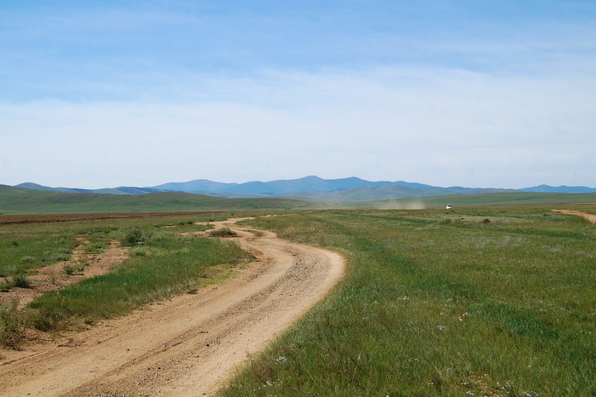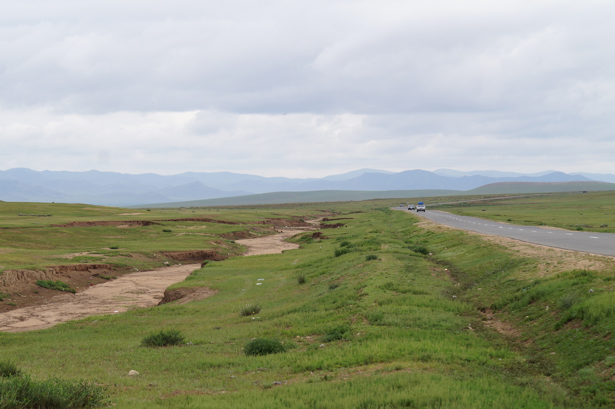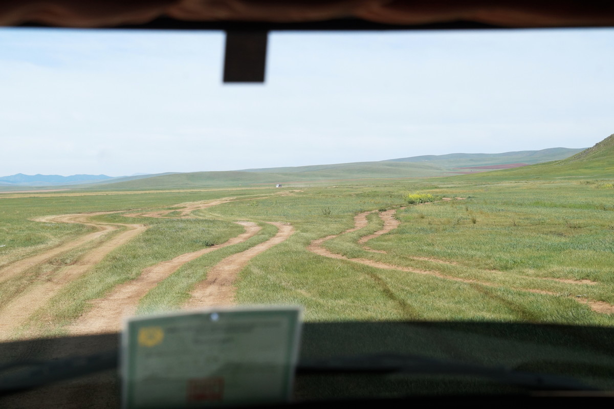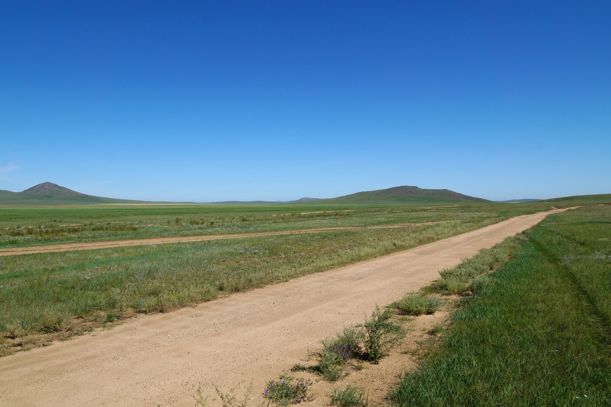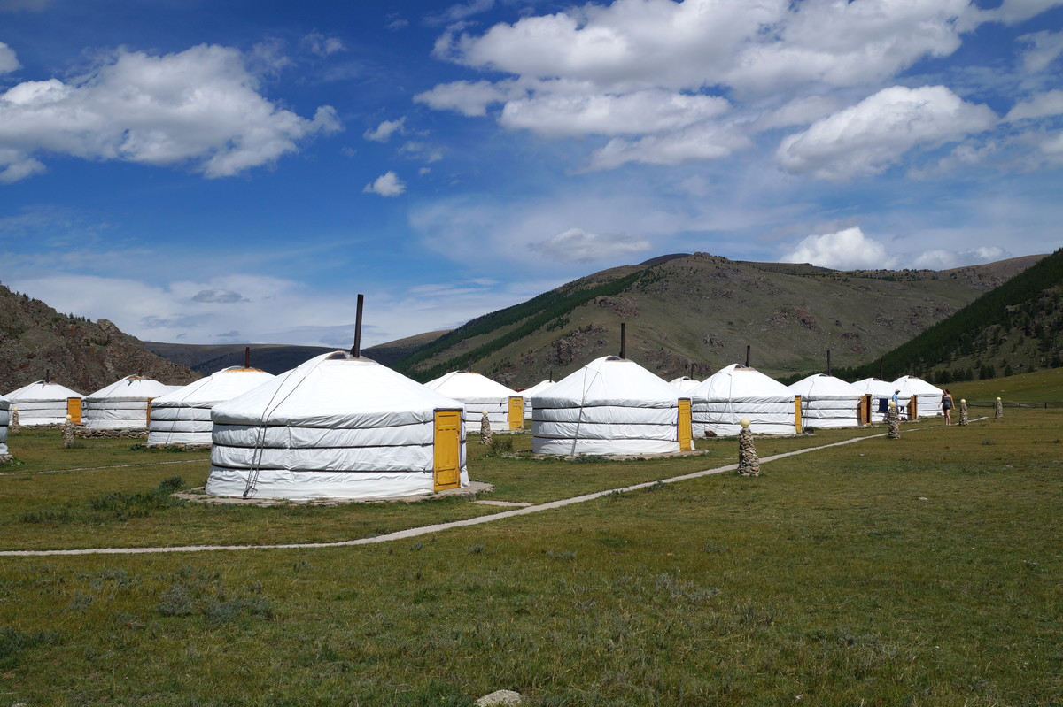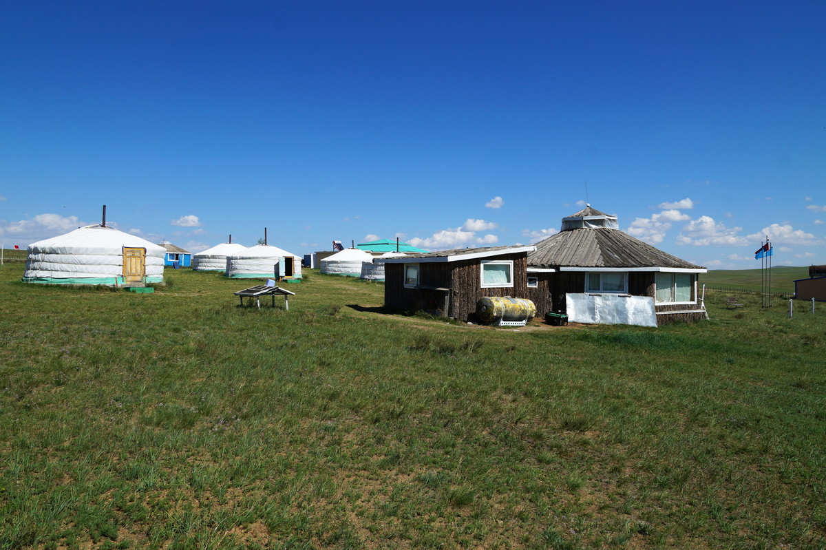 Khankhar Uul (Bulgan). Mittags gegen 14:00 Uhr erreichen wir das nächste Ger-Camp Khankhar Uul. Um den Berg herum erreicht man das Khamba-Kloster (Erdene Khambiin Khiid). Der Bergrücken hinter dem Camp ist der Khögnö Khan Uul.