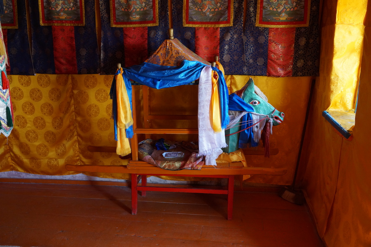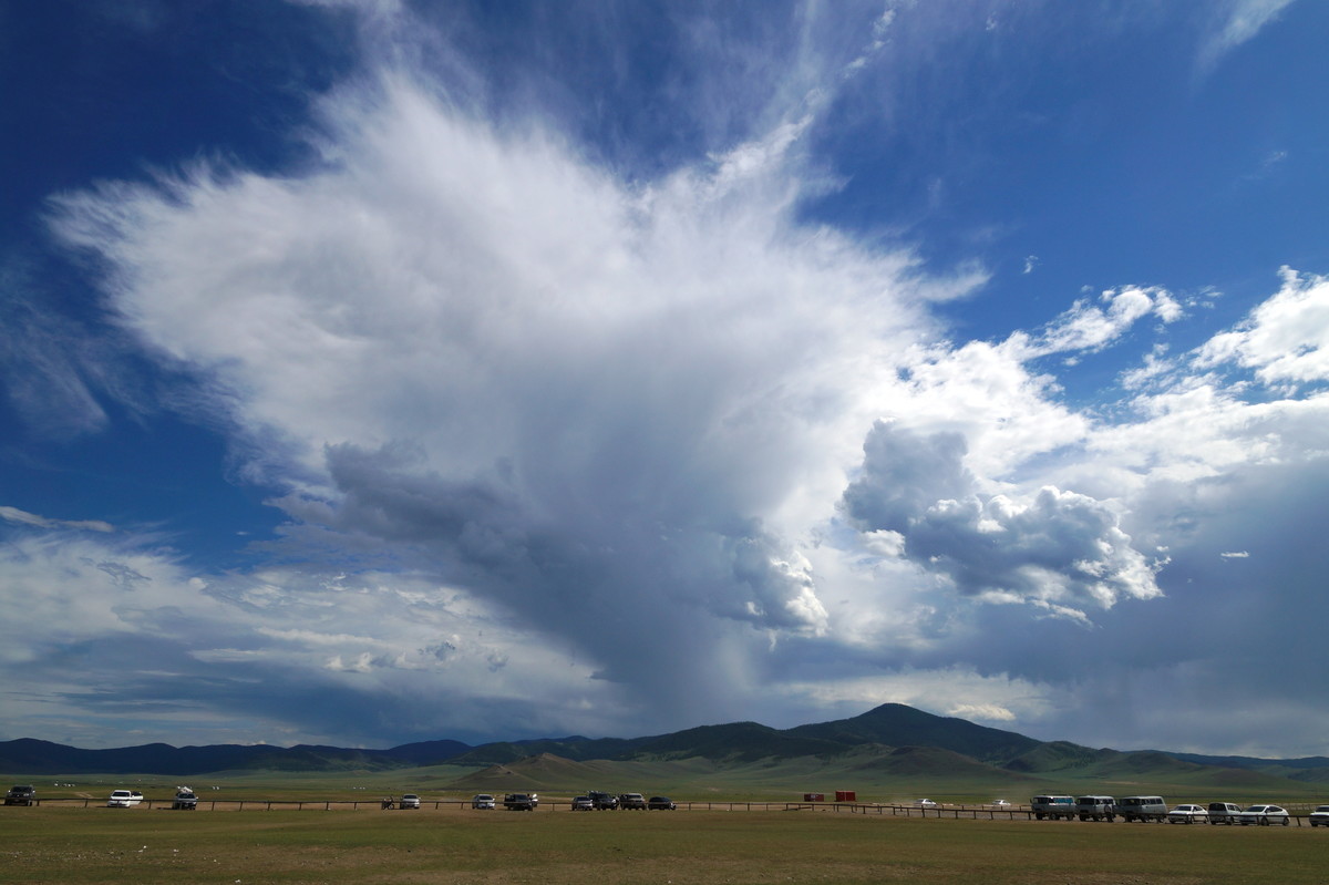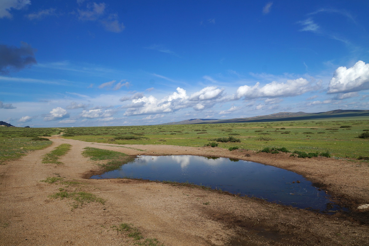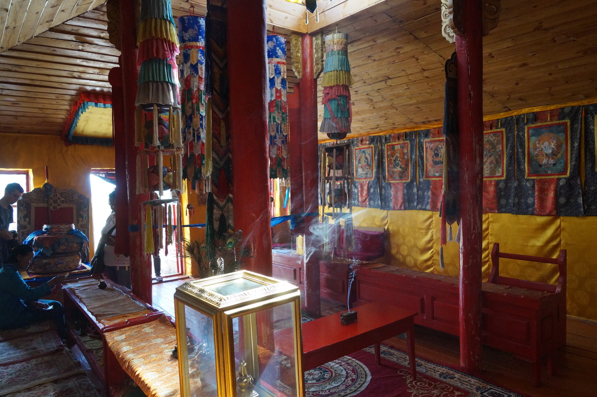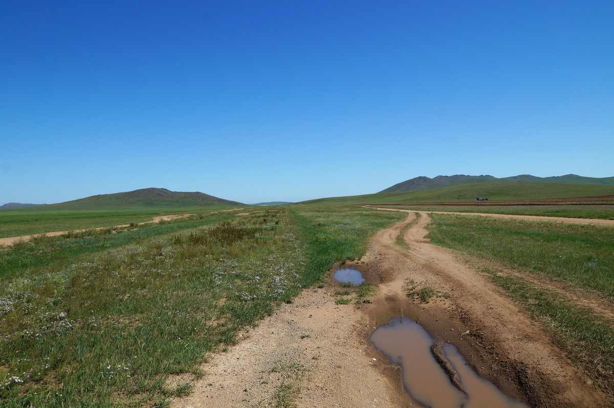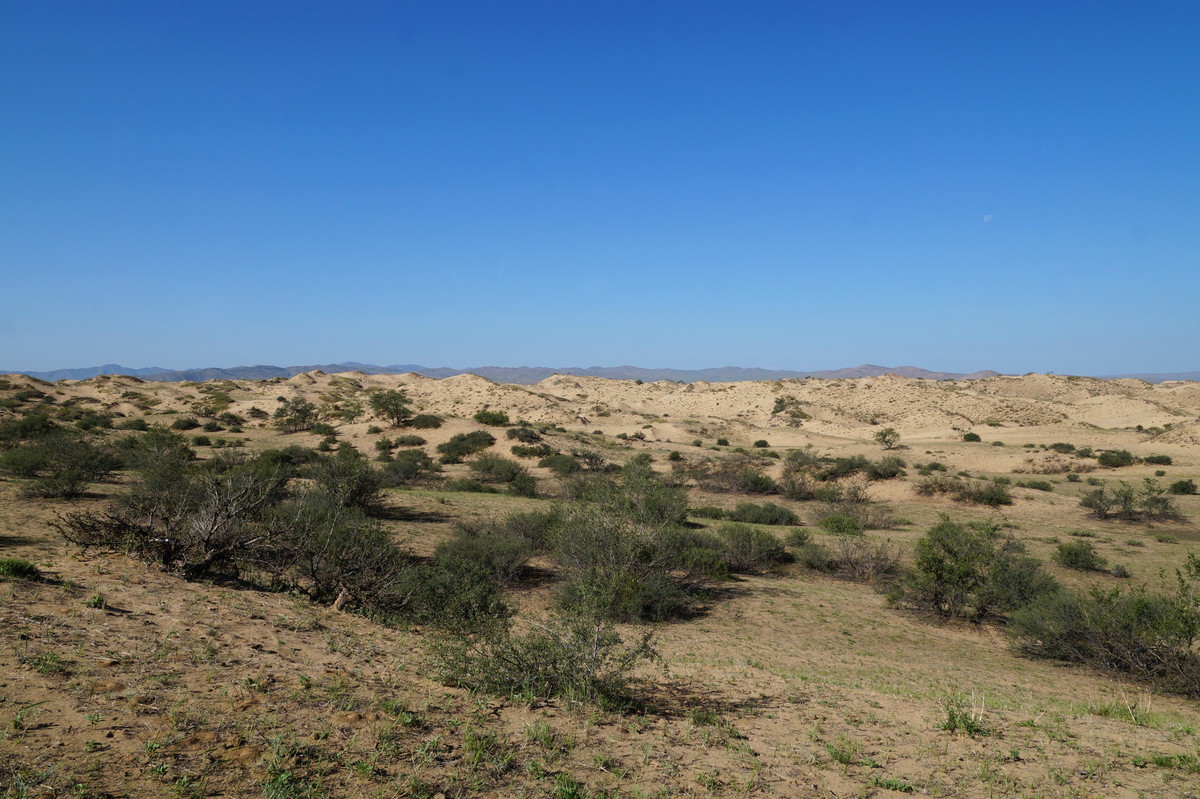 Khankhar Uul (Bulgan). Mittags gegen 14:00 Uhr erreichen wir das nächste Ger-Camp Khankhar Uul. Um den Berg herum erreicht man das Khamba-Kloster (Erdene Khambiin Khiid). Der Bergrücken hinter dem Camp ist der Khögnö Khan Uul.