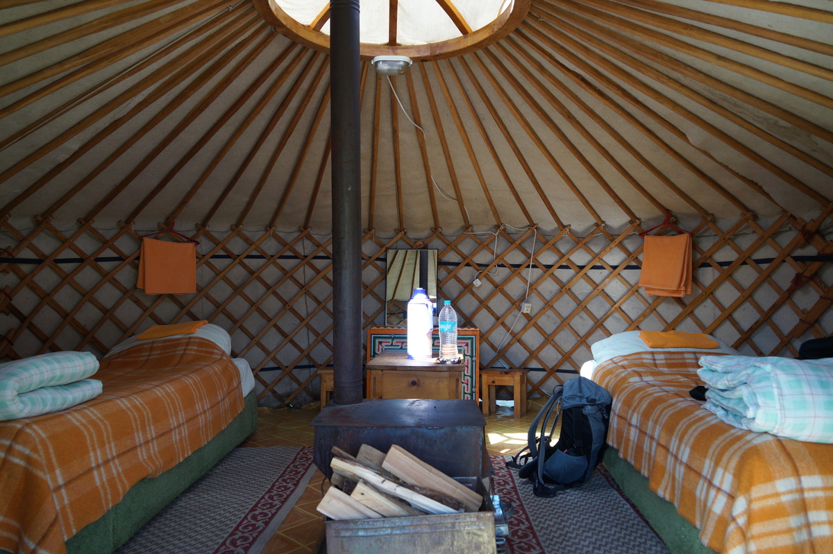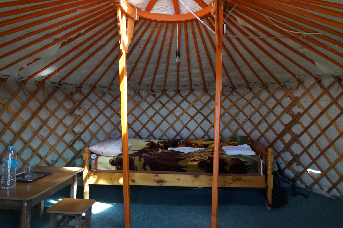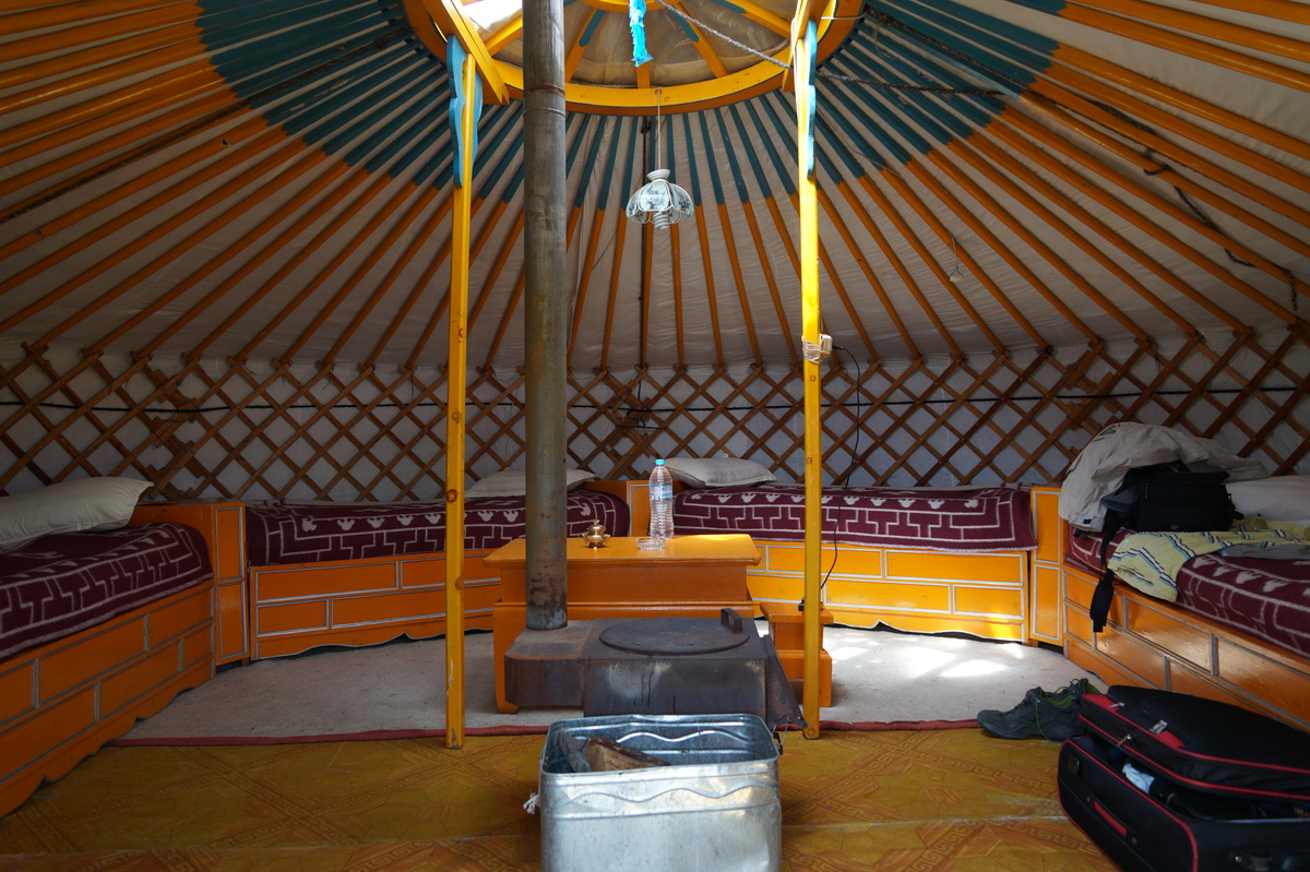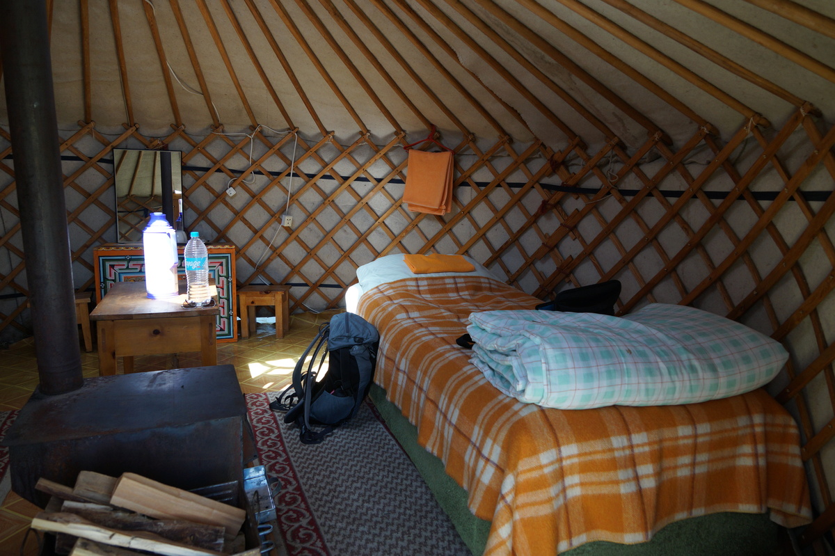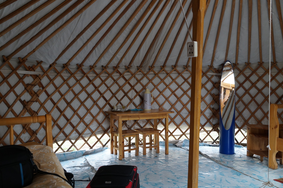 Gegen 23 Uhr beginnt das Licht in der Jurte zu blinken. Das ist das Zeichen, dass in Kürze der Stromgenerator abgeschaltet wird. Und darauf wurde es dunkel. Also richtig dunkel. Ich habe doch die Taschenlampe über mir an den Dachstreben befestigt - wo ist das blöde Ding nur?