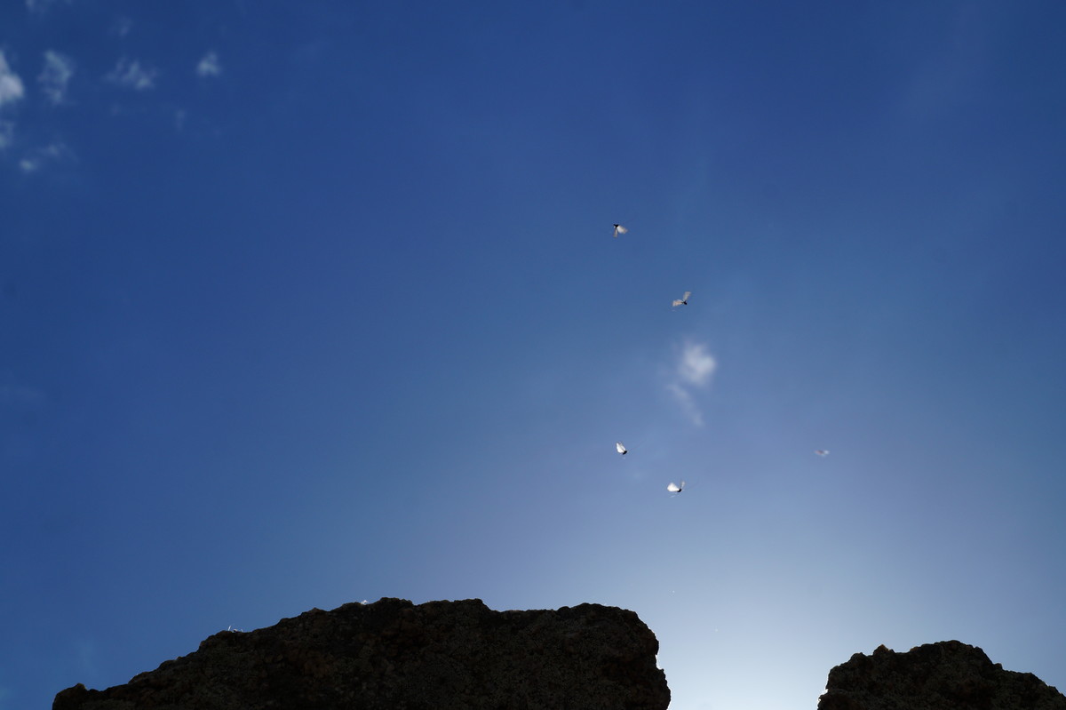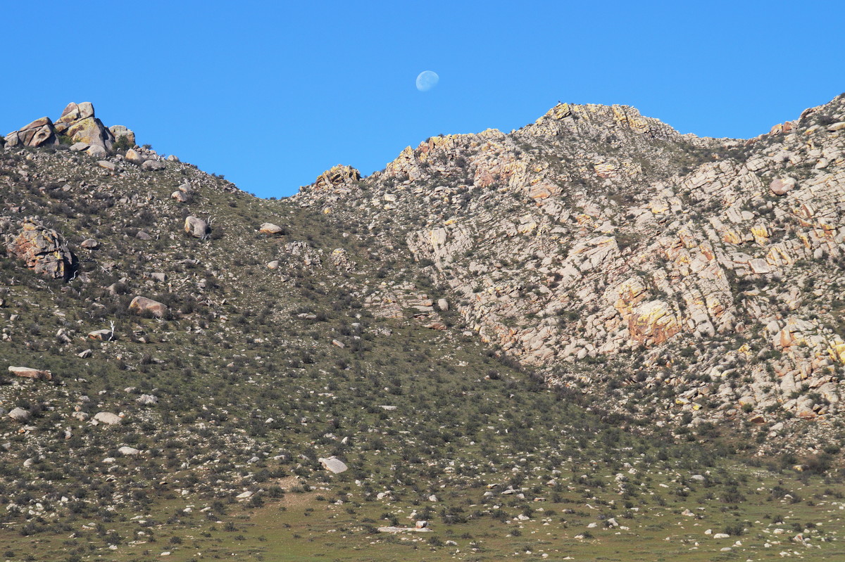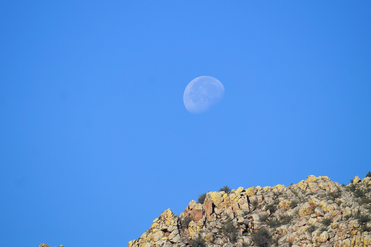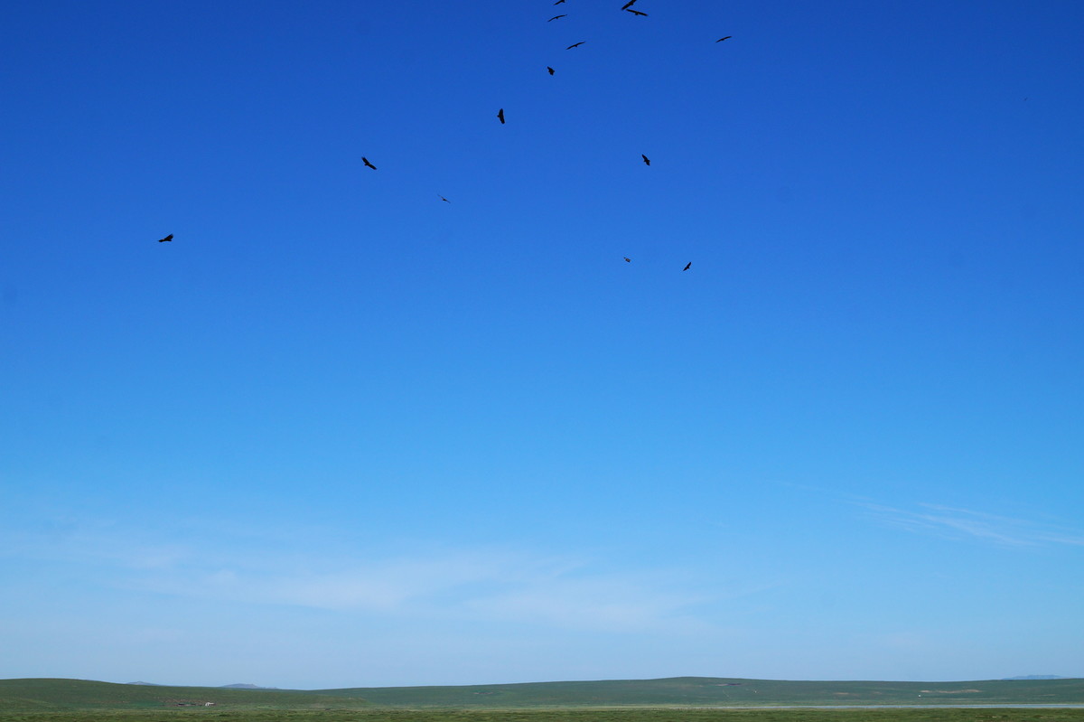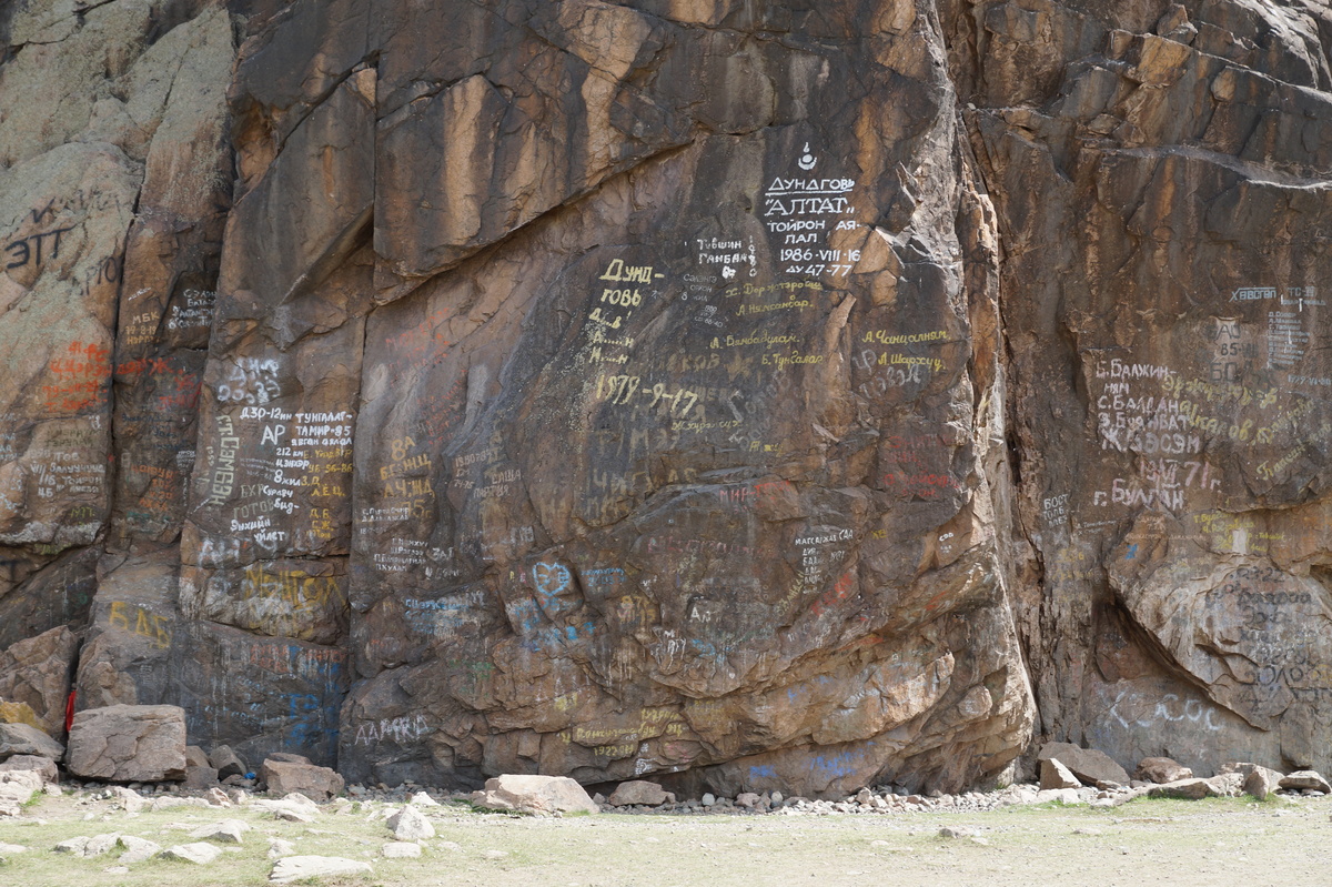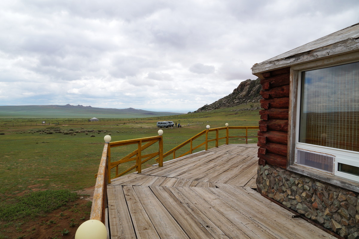 Taikhar Chuluu. Ein Stück weiter nach Nordwesten liegt der Felsen Taikhar Chuluu. Um den Felsen herum gibt es ein paar Stände, wir können dort sogar mit dem Bogen auf eine Scheibe schießen - ich verfehle sie nur knapp. Ein Spaziergang führt uns durch die Dämmerung am Abend.