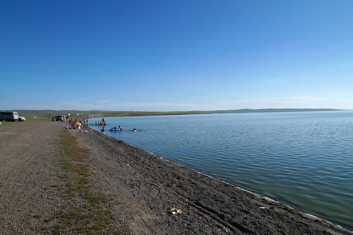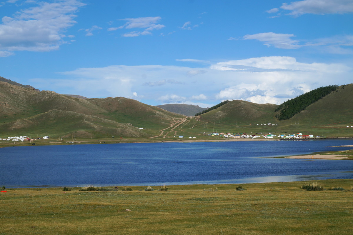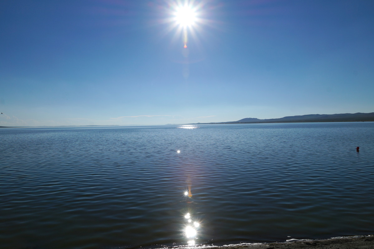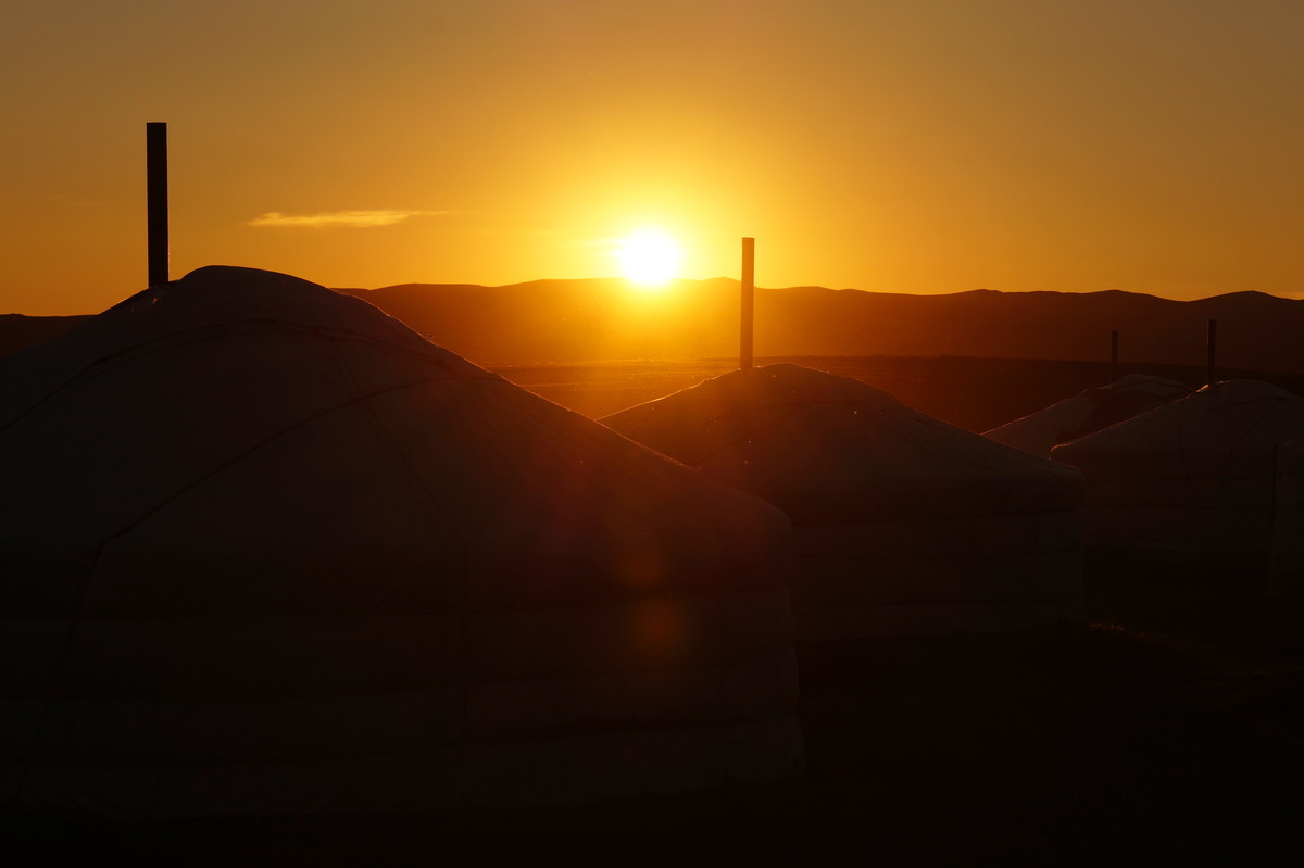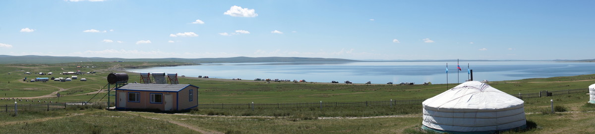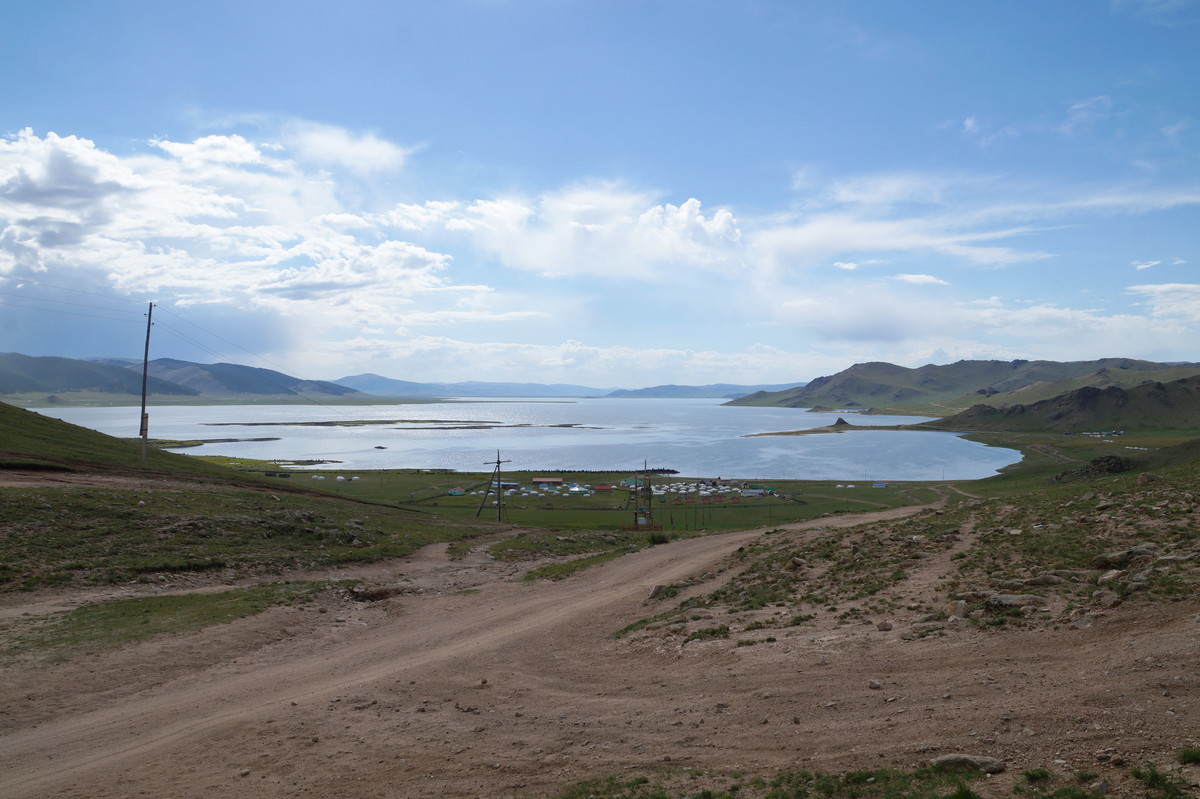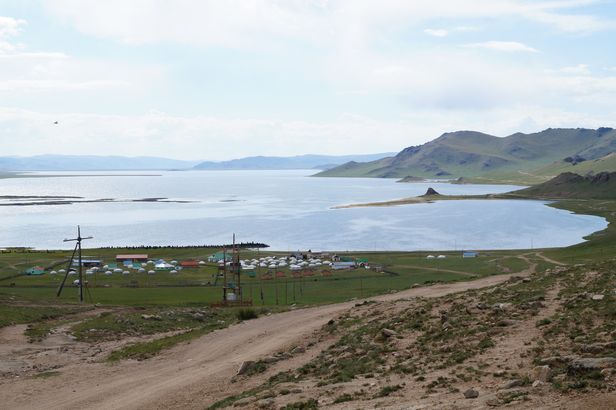 Ögii Nuur (Arkhangai). Weiter nach Westen geht es zu unserem nächsten Camp am Ögii Nuur. Vom Camp aus sieht man, wie sich der See vor einem erstreckt. Abends erleben wir den Sonnenuntergang über dem Camp.