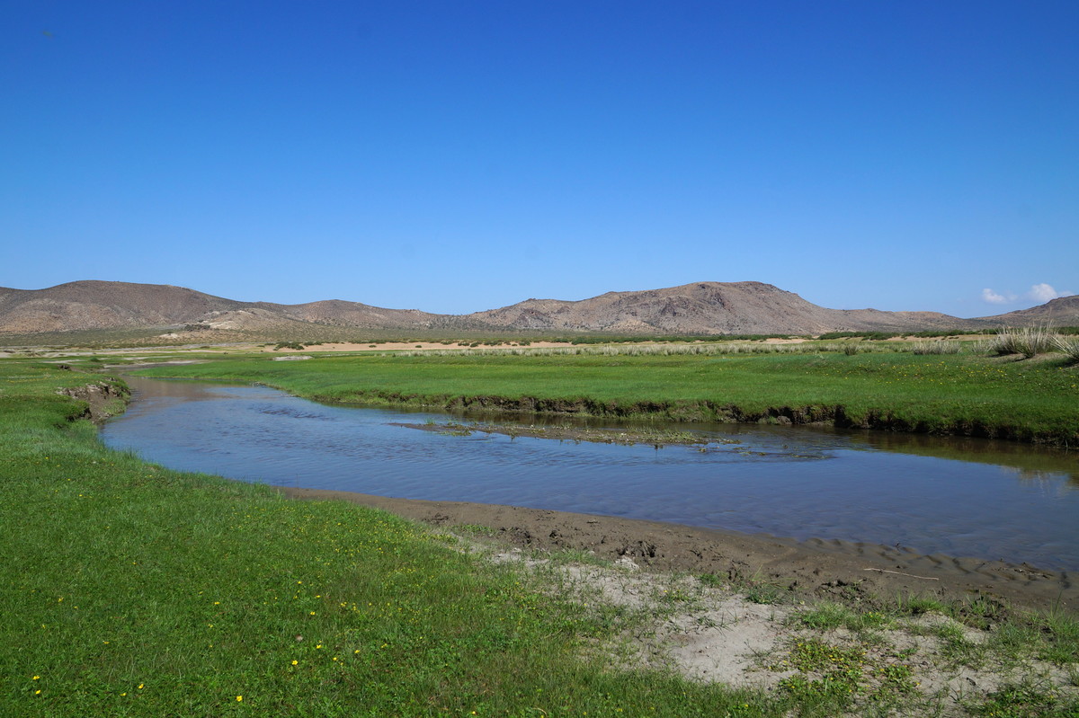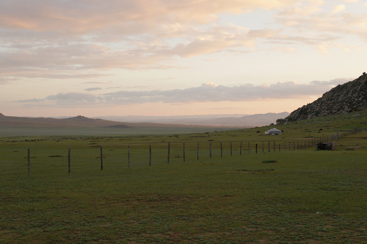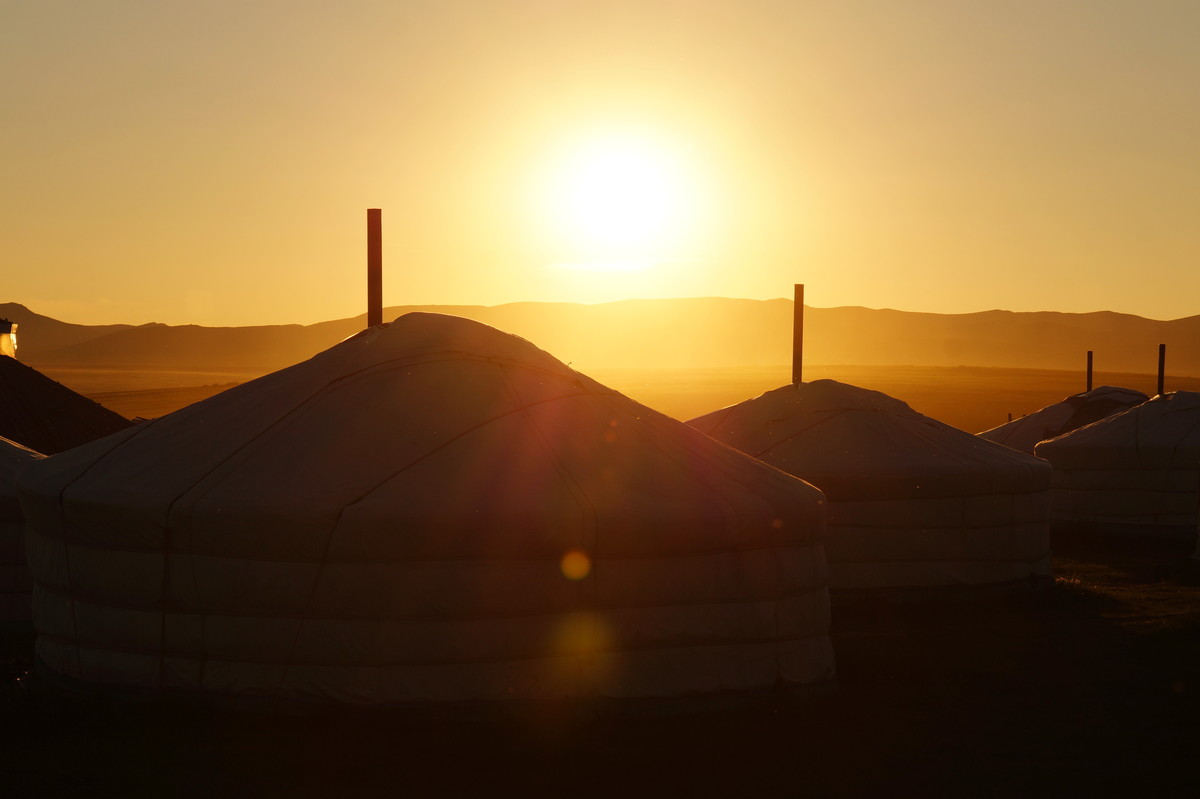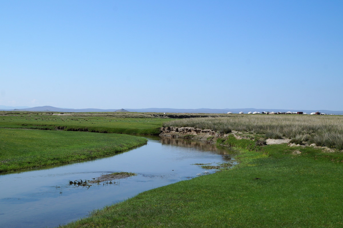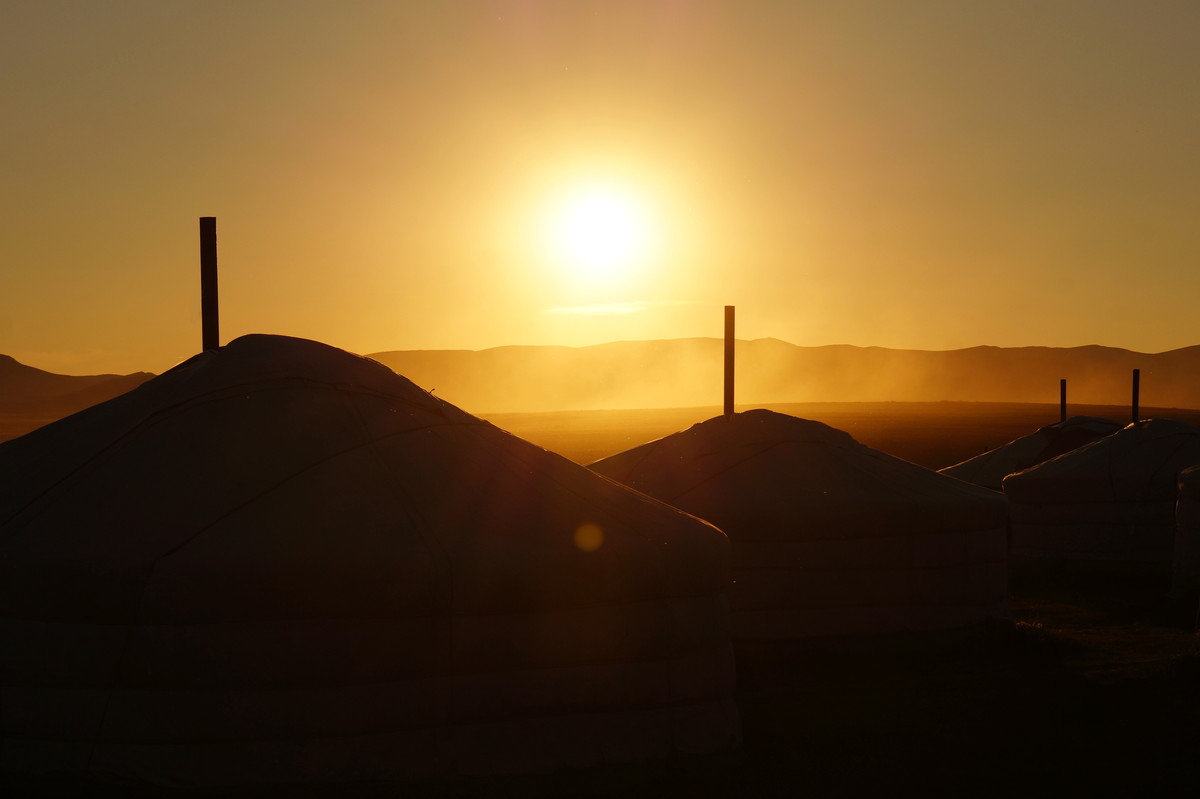 Ögii Nuur (Arkhangai). Weiter nach Westen geht es zu unserem nächsten Camp am Ögii Nuur. Vom Camp aus sieht man, wie sich der See vor einem erstreckt. Abends erleben wir den Sonnenuntergang über dem Camp.