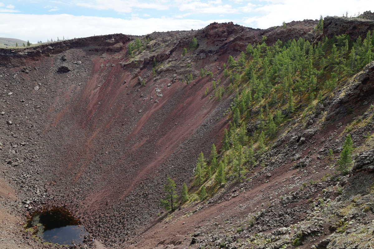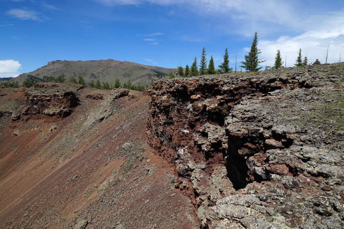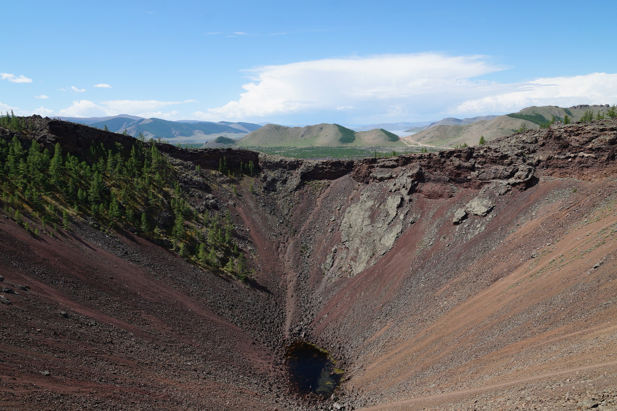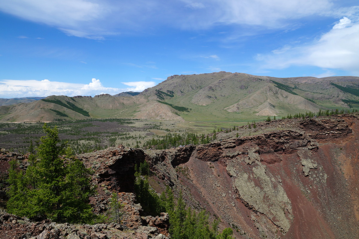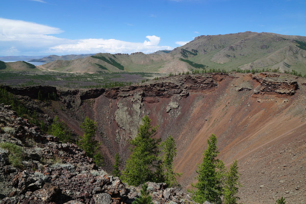 Khorgo und Terkhiin Tsagaan Nuur. Wir bewegen uns weiter westwärts durch den Aimag (Bezirk) Arkhangai. Die Schlucht des Flusses Chuluut Gol erstreckt sich vor uns. Wir fahren direkt bis zum Fuß des Vulkans Khorgo. Von oben gibt es einen grandiosen Blick über die vulkanische Landschaft.